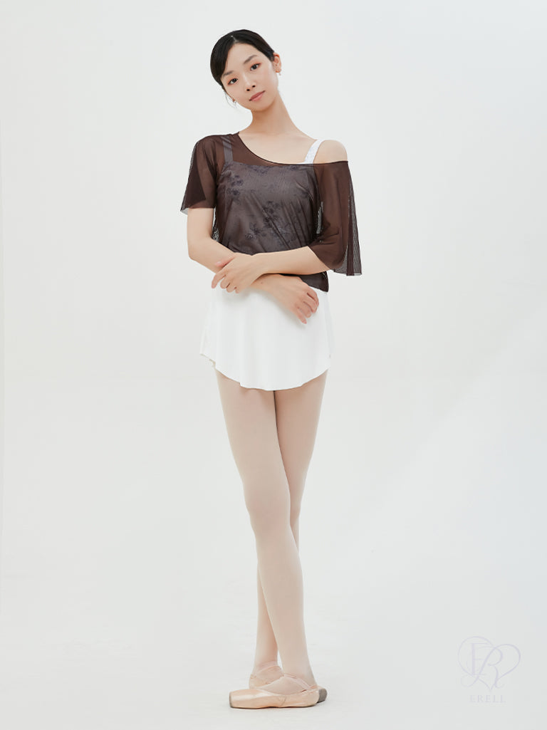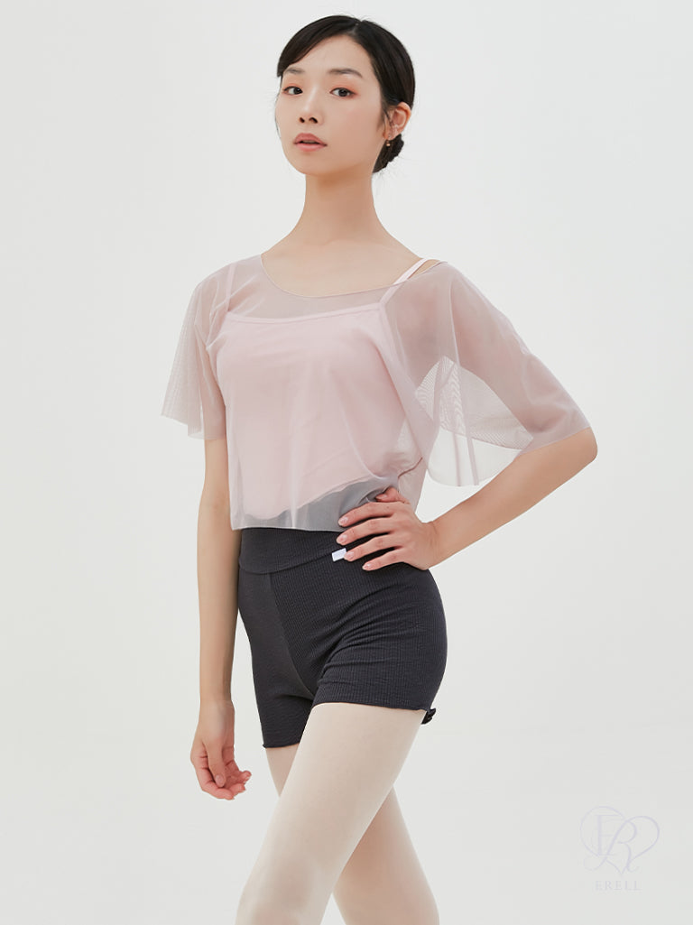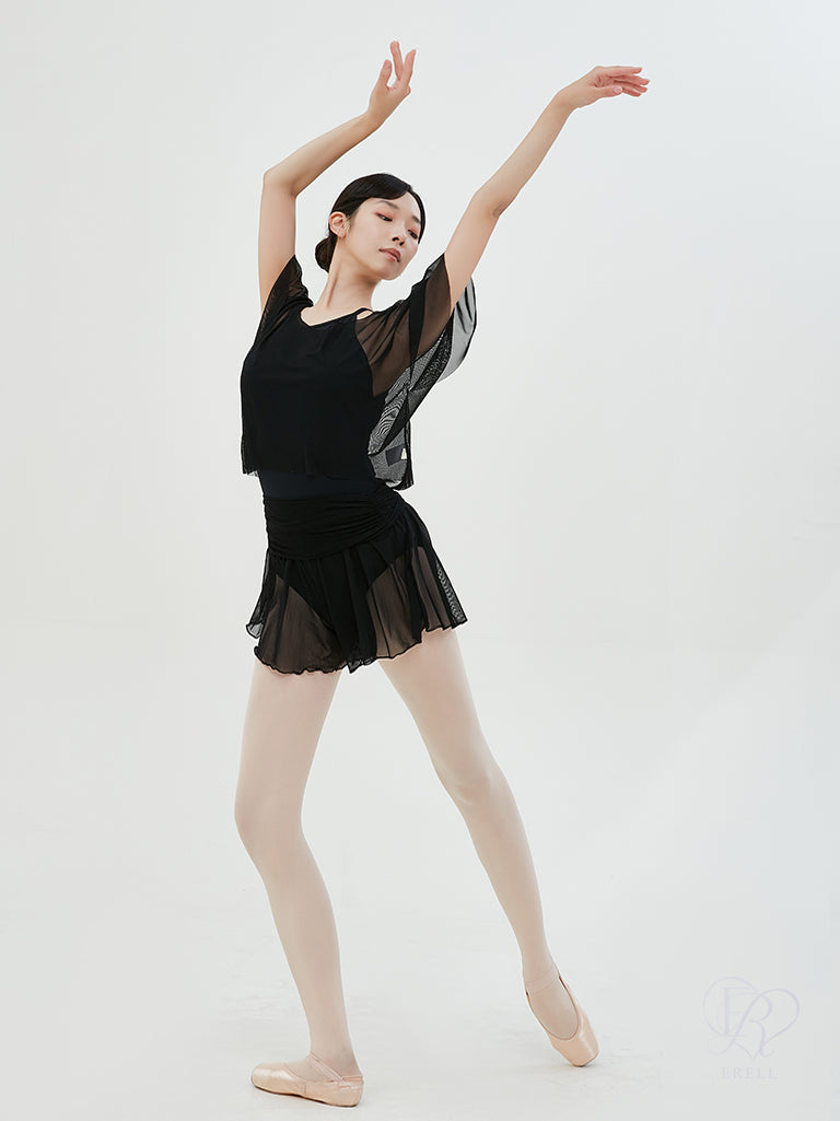A ballet warmer top made from cool-touch mesh fabric.
