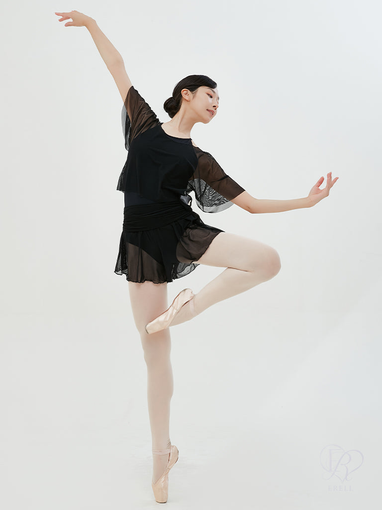 The half-sleeve design enhances the graceful, swan-like lines of ballet movements, adding a touch of elegance.