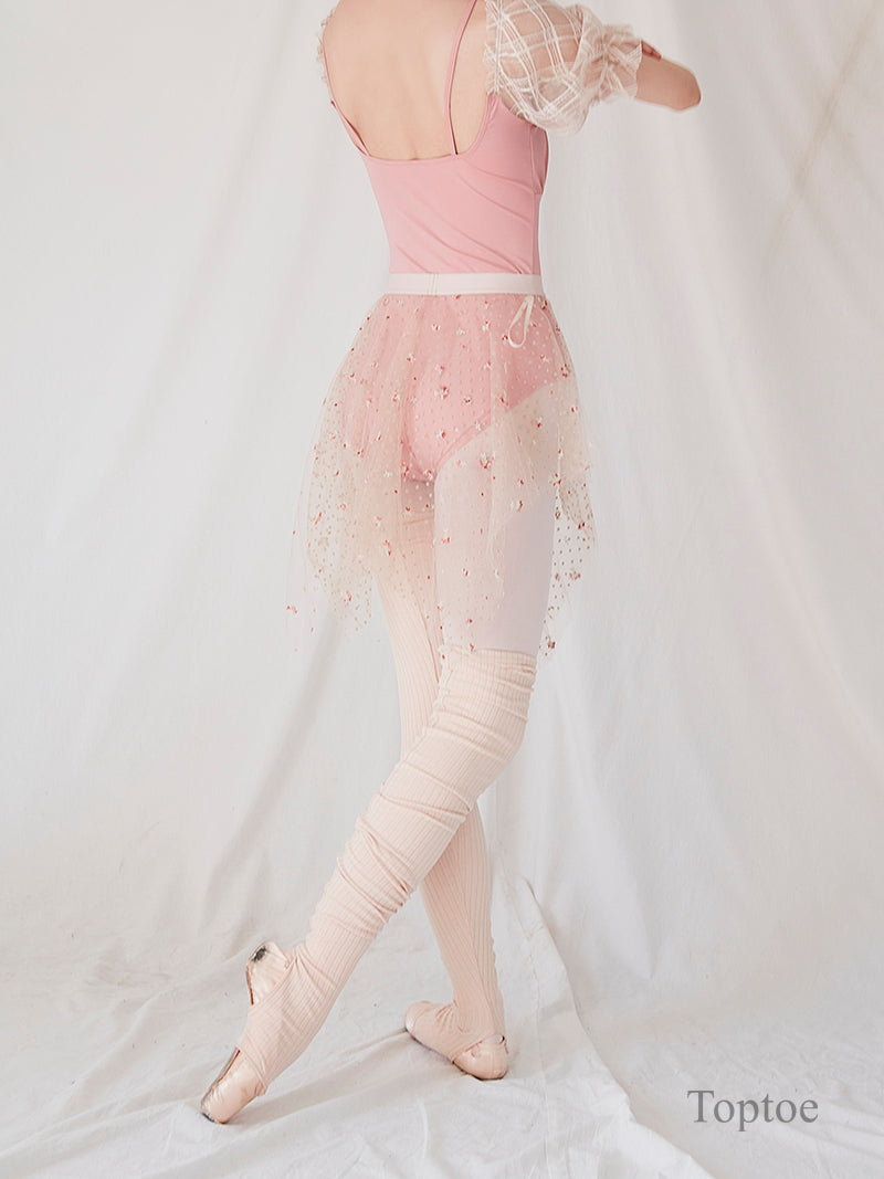 The Bloom Thigh-High Warmer is a long leg warmer that extends from the ankle to the upper thigh.