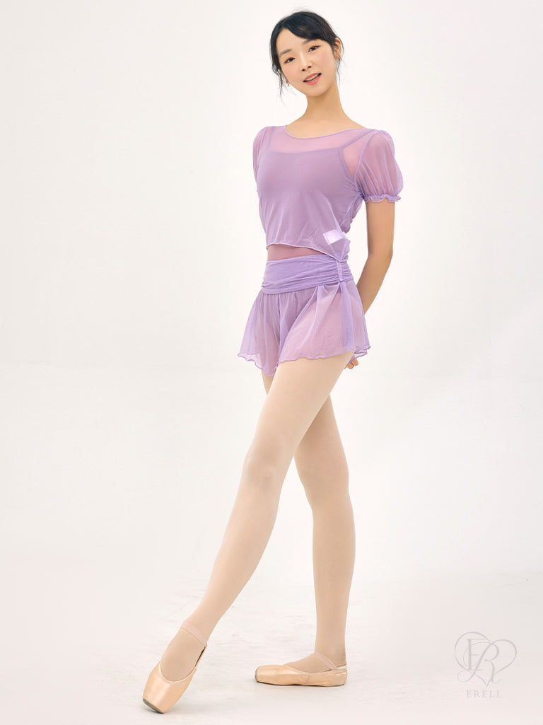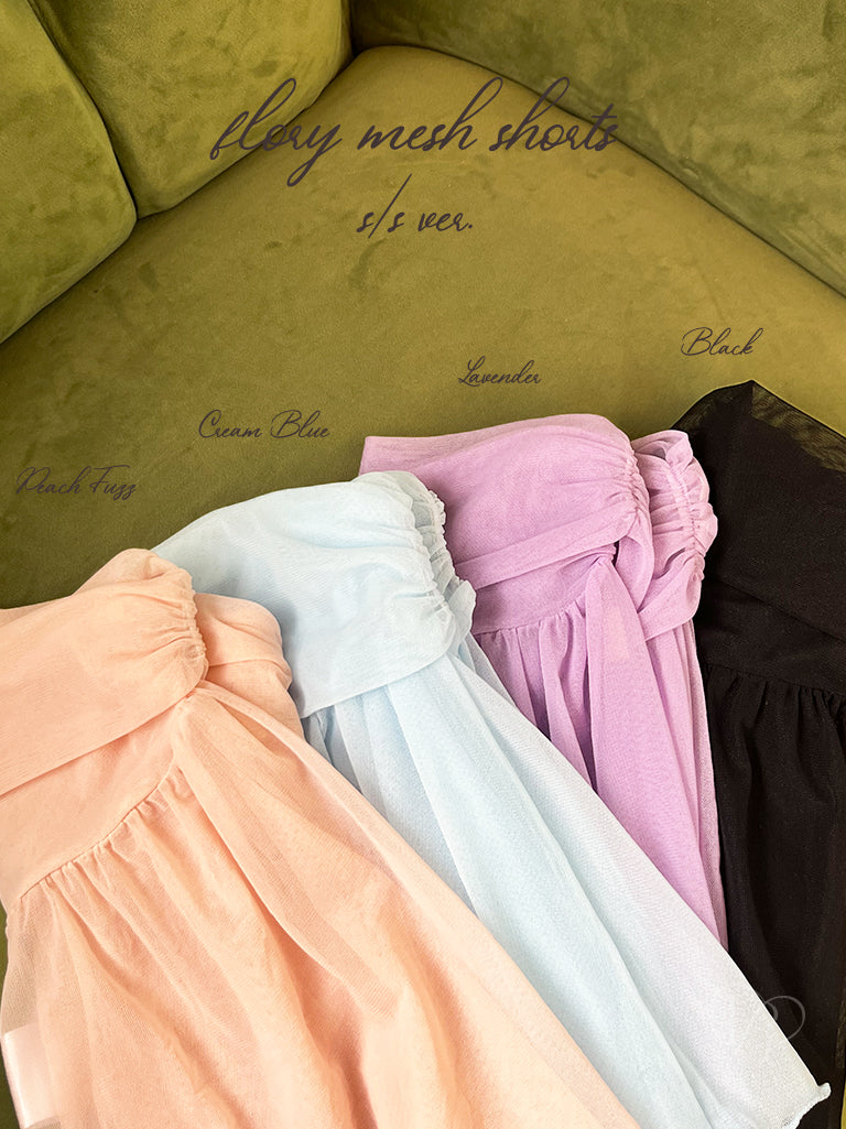 These flare-style mesh shorts for S/S feature lovely details at the waist and hem, capturing a charming vibe.