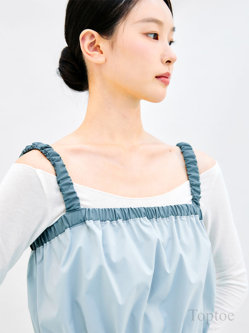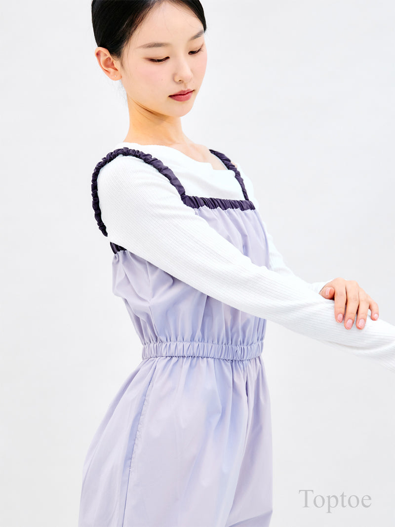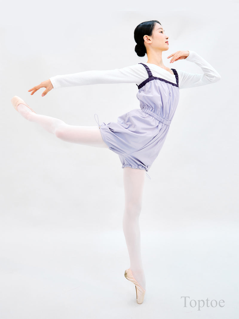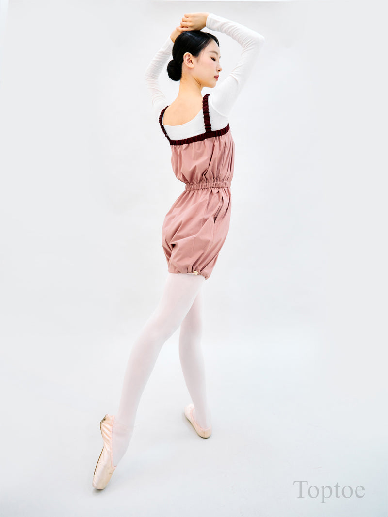 A stylish short romper featuring contrast strap detailing, designed with ballerinas in mind.