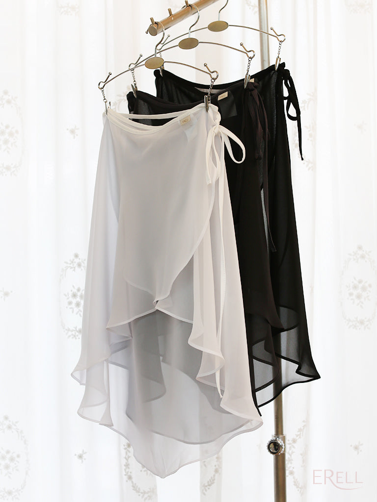 This is a lightweight and thin wrap skirt made of silky chiffon fabric that drapes beautifully.