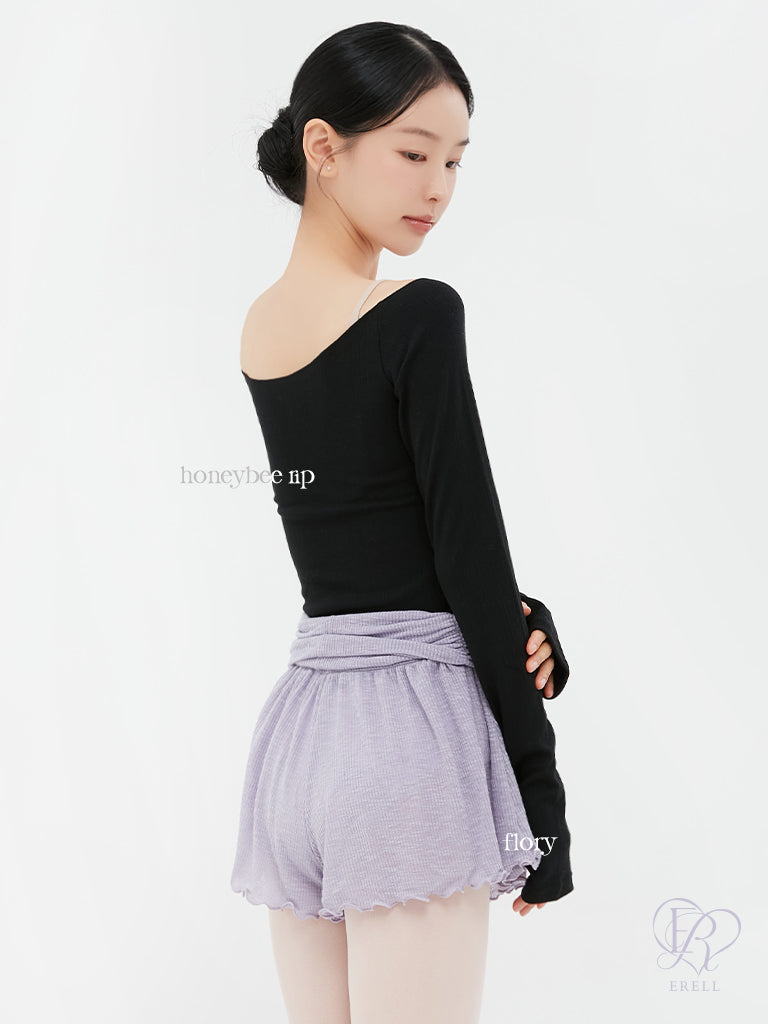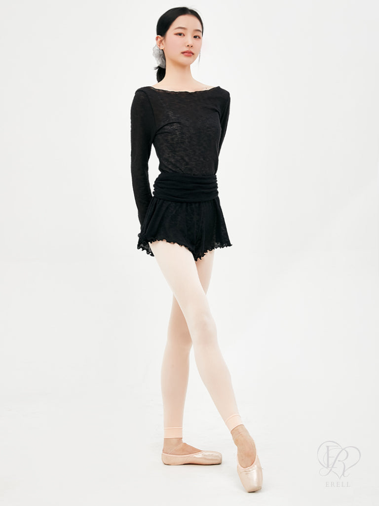 These comfortable flared warm-up shorts feature lovely detailing at the waist and hem, adding a soft and feminine touch.