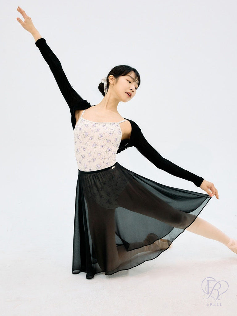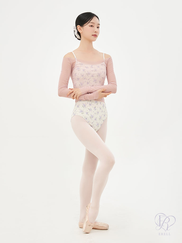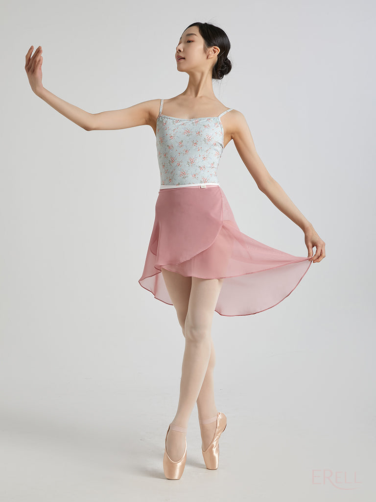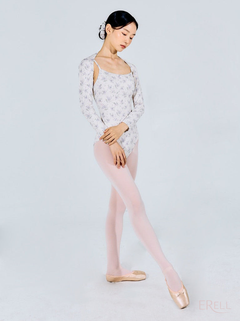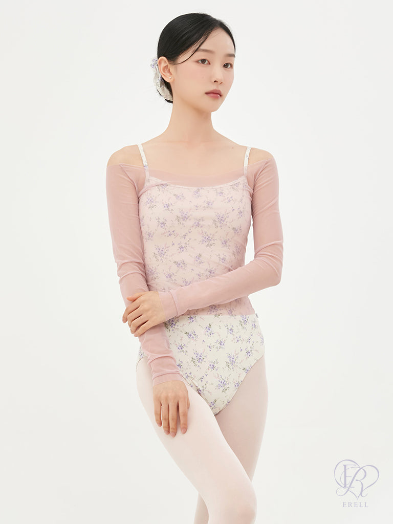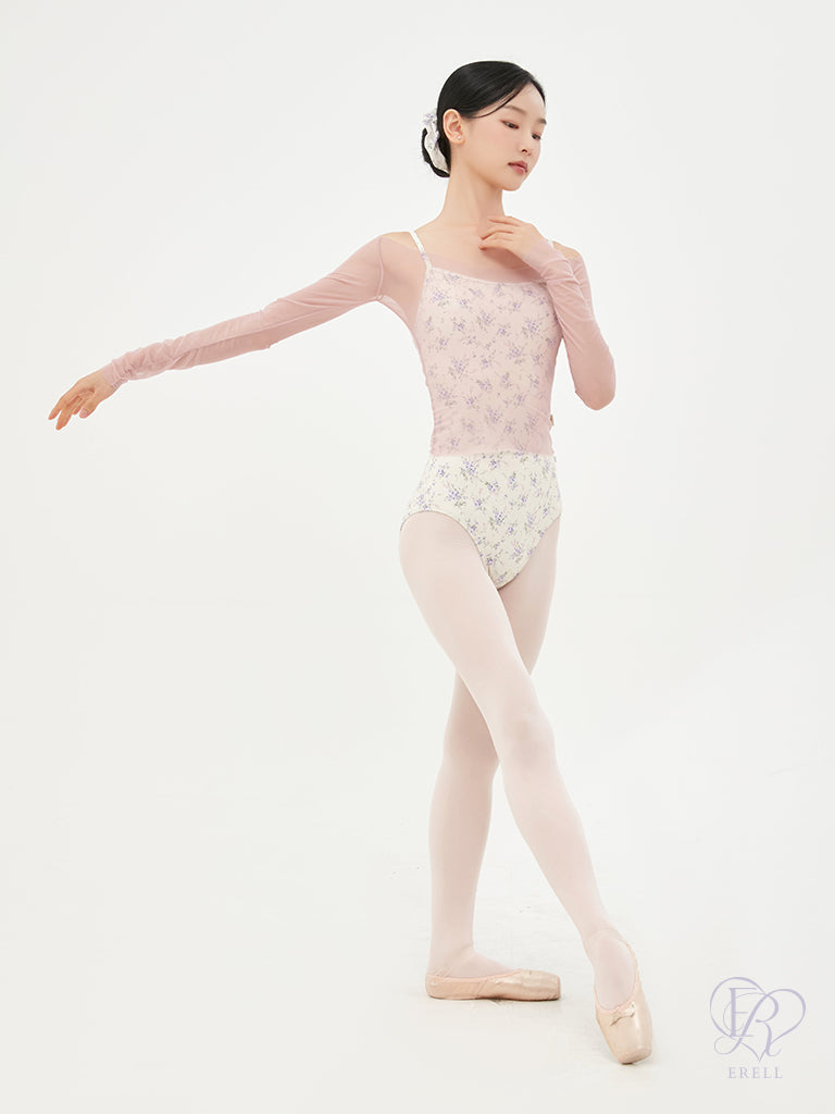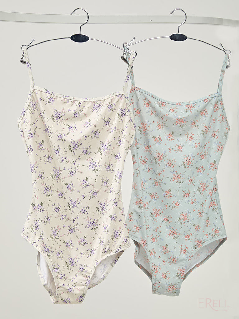 A camisole‑style leotard featuring a warm, springtime floral print.