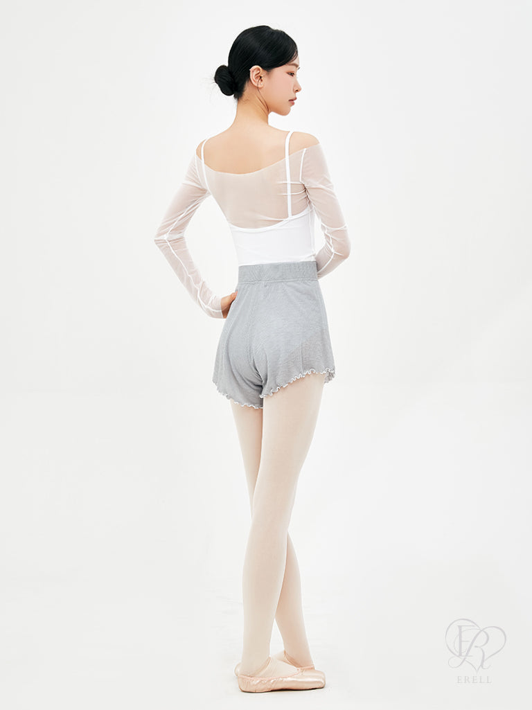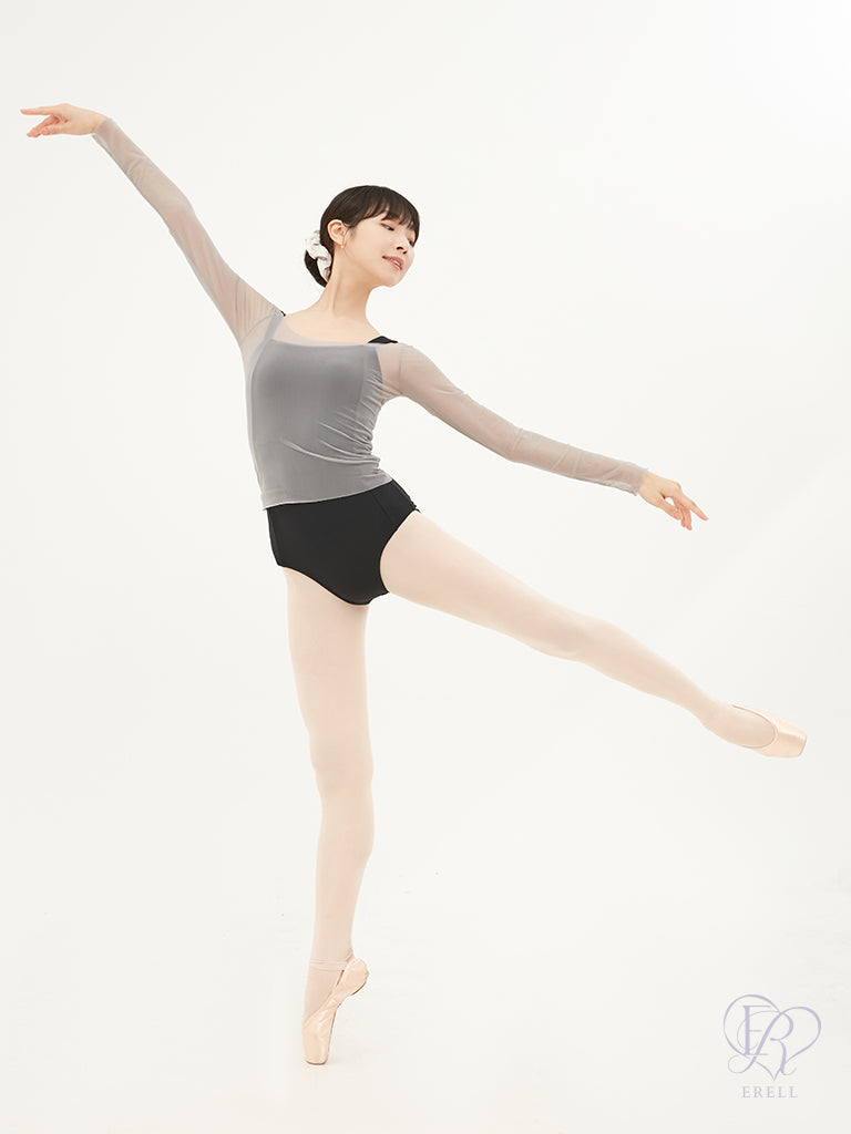 The neckline, sleeve ends, and hem are finished with clean-cut edges, without additional stitching.