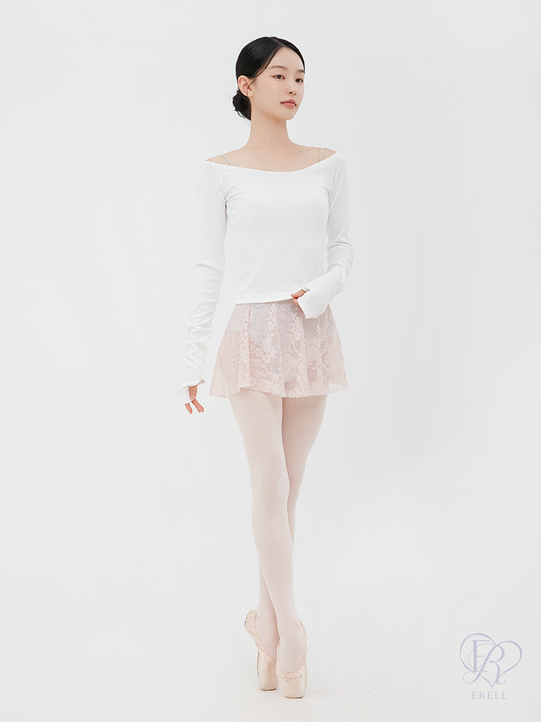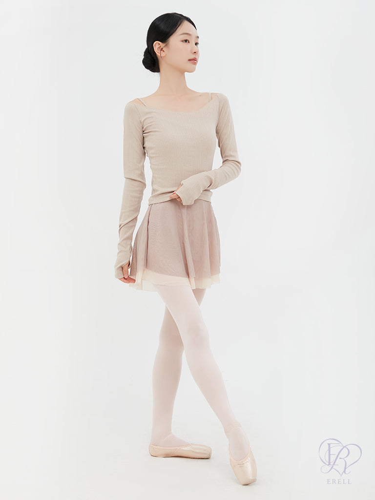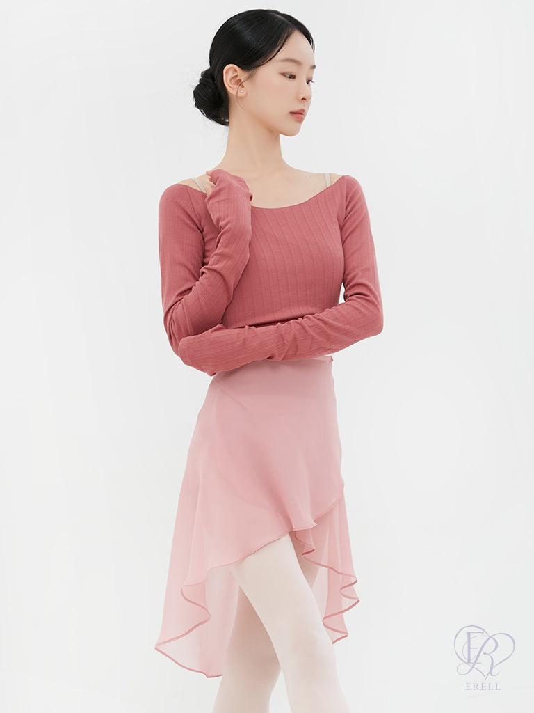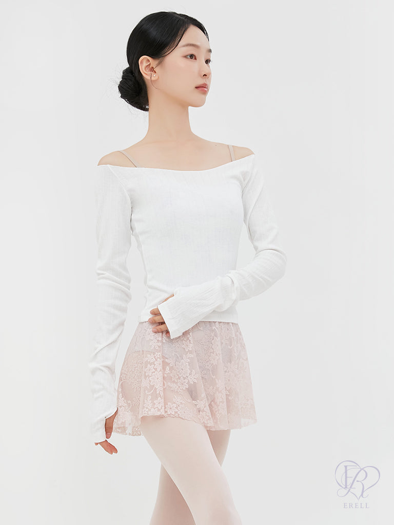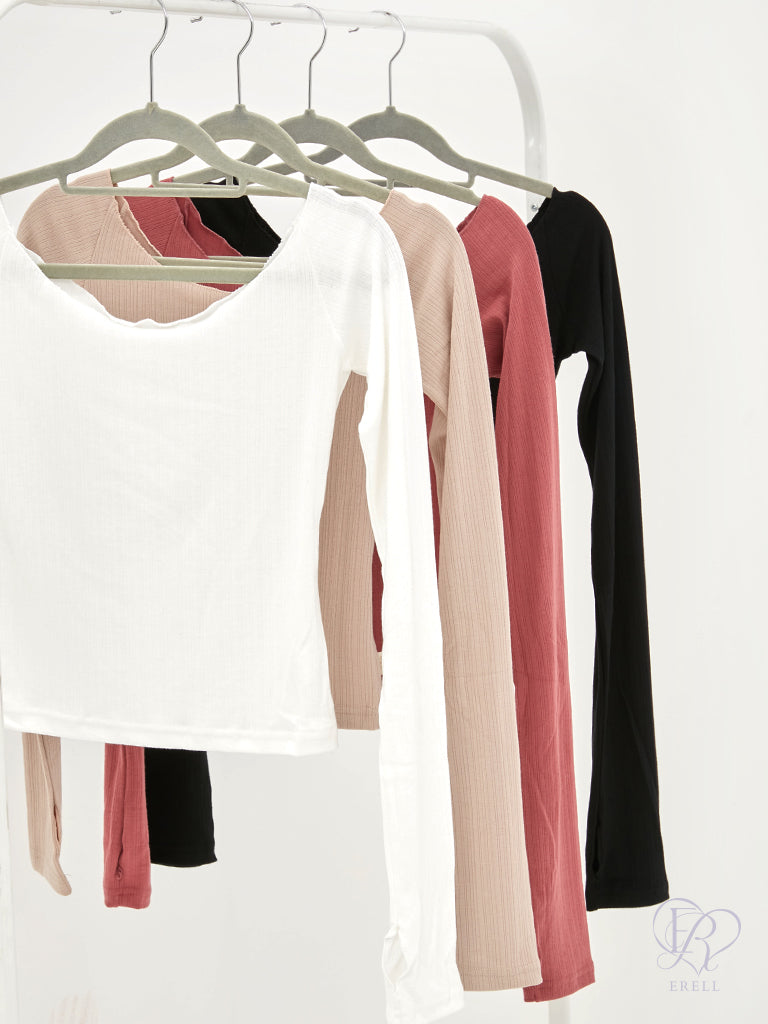 Made from ribbed fabric with excellent stretch, it gently hugs the body while softly enhancing the neckline and shoulders, creating a subtly sophisticated semi-off-shoulder style.