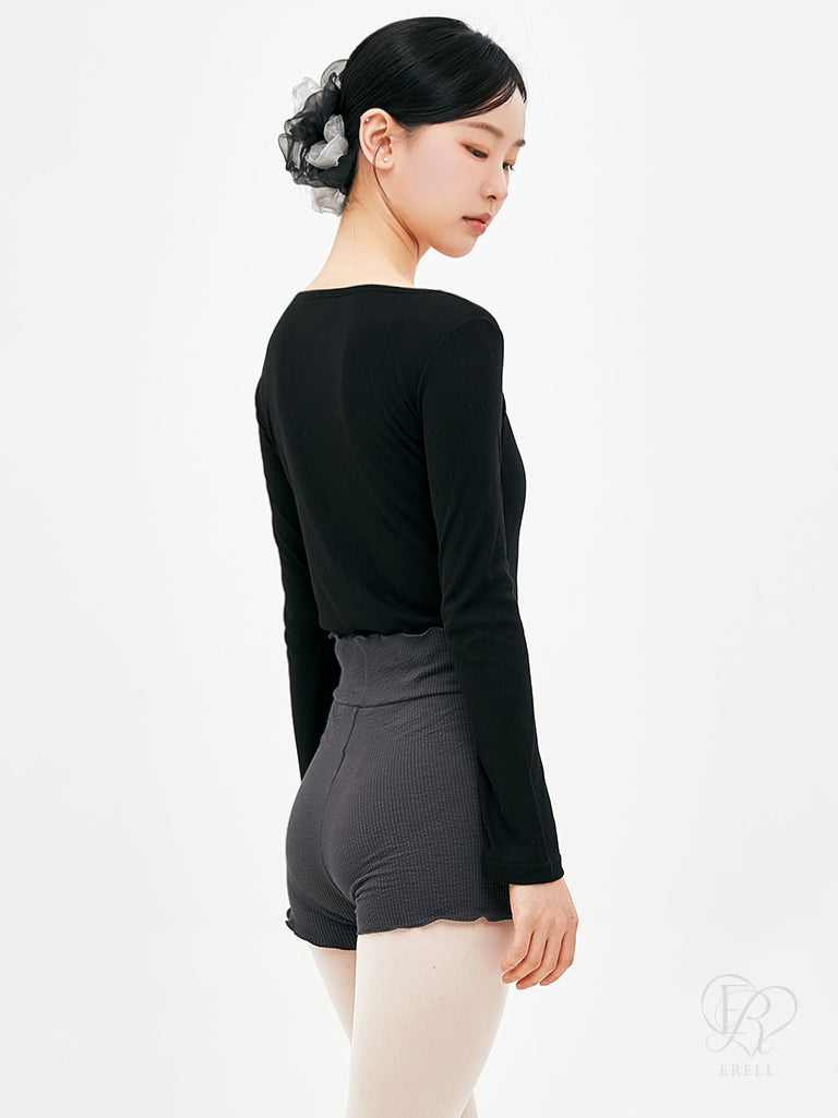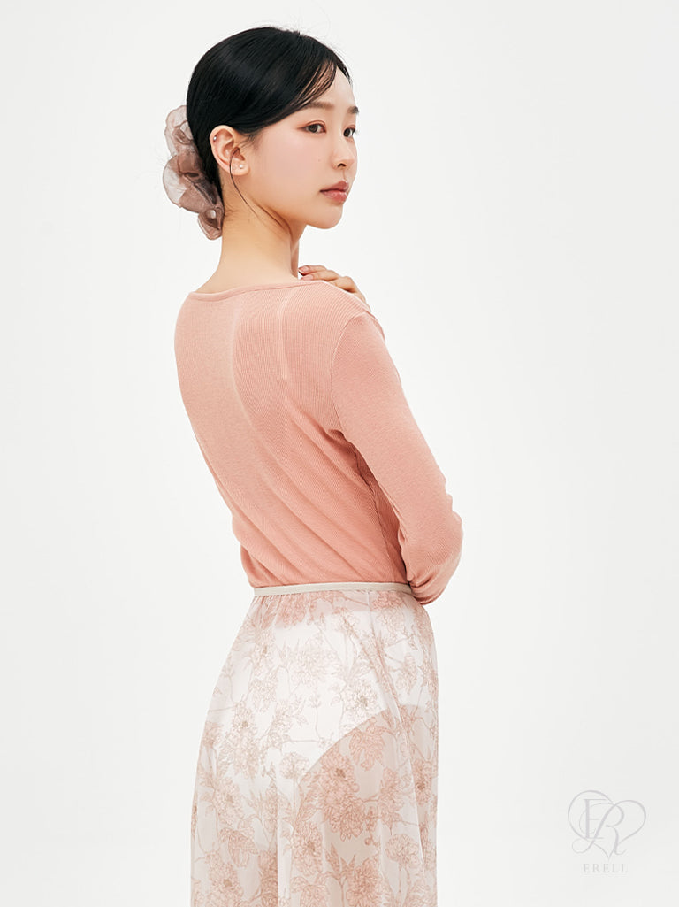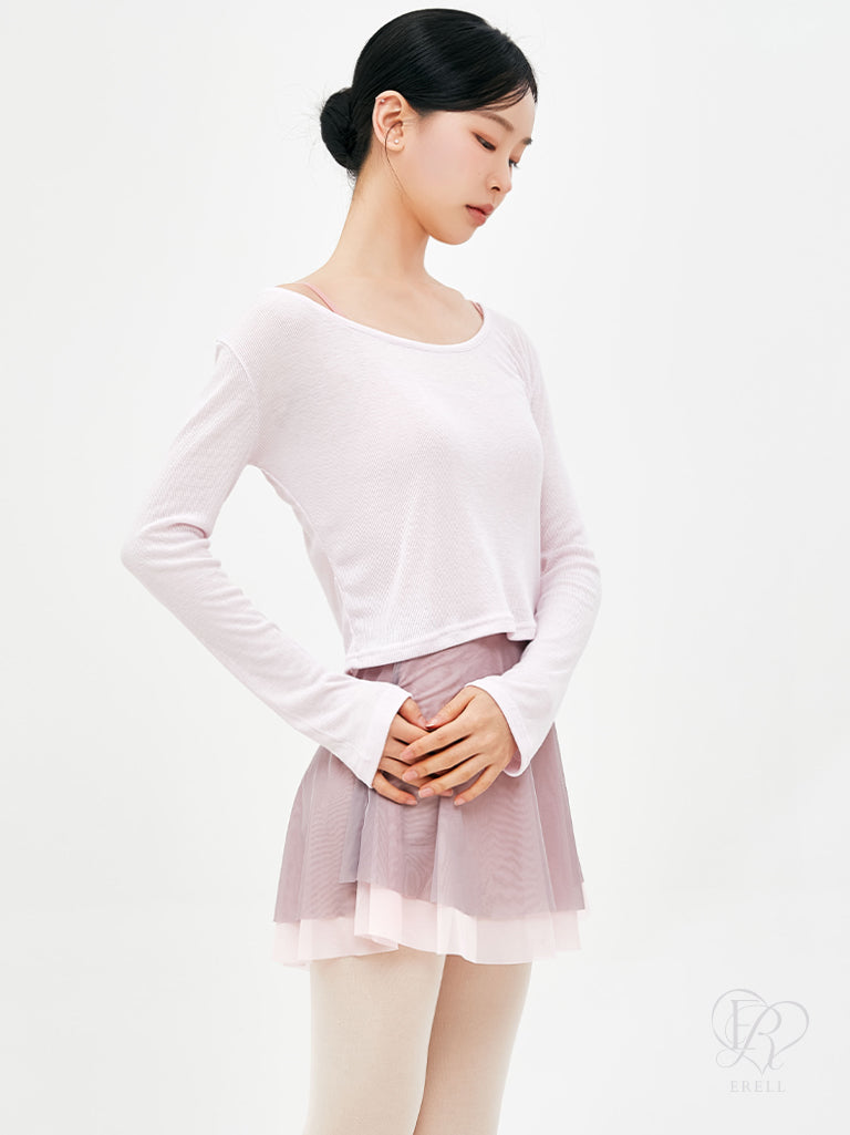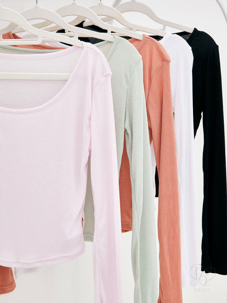 A long sleeve top made of lightweight ribbed fabric.