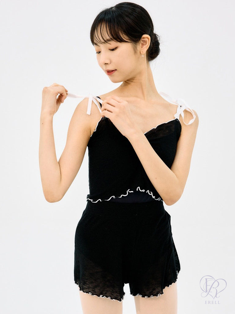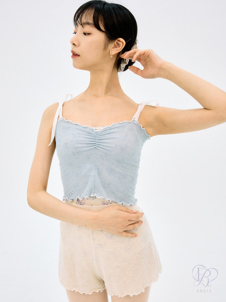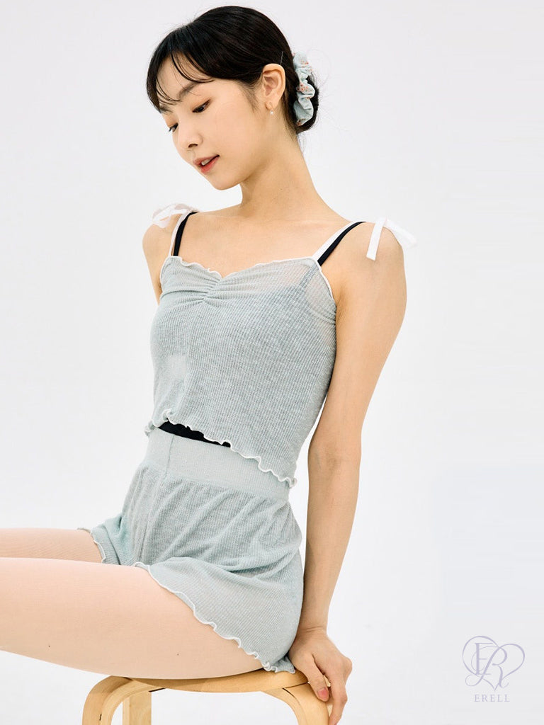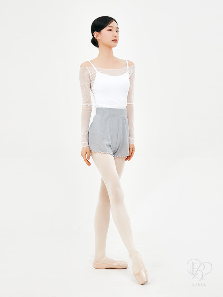The delicately finished hems offer a soft, airy look, and the shorts can also be styled on their own—making this piece both versatile and practical.