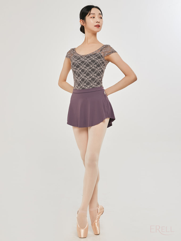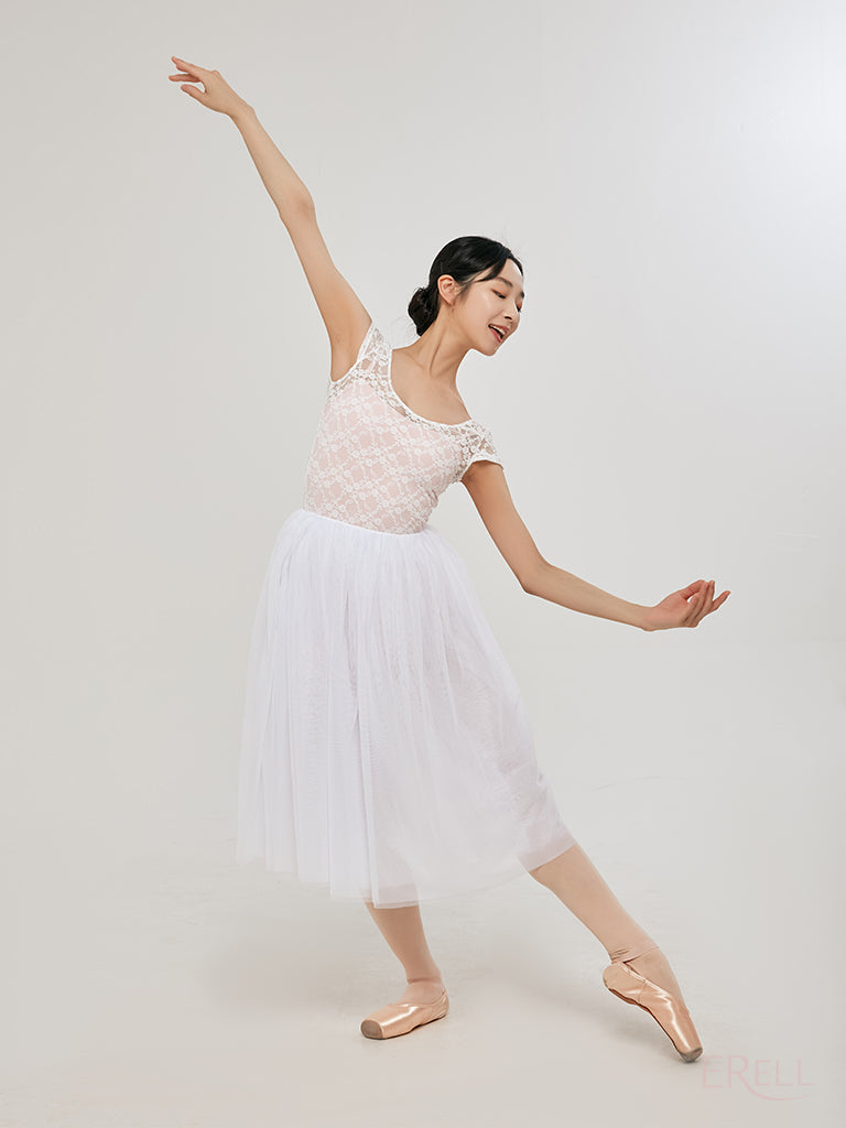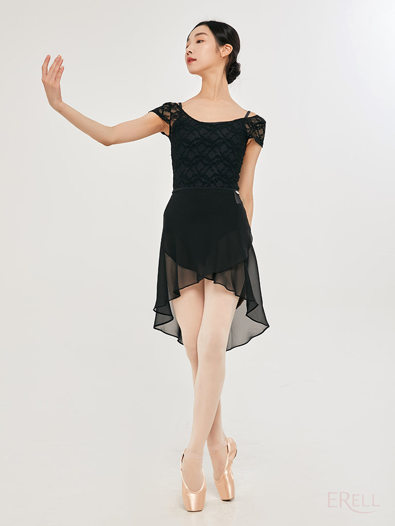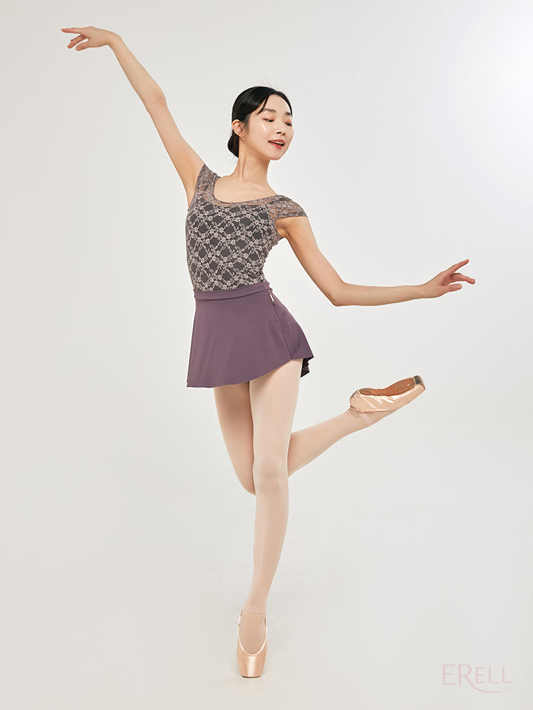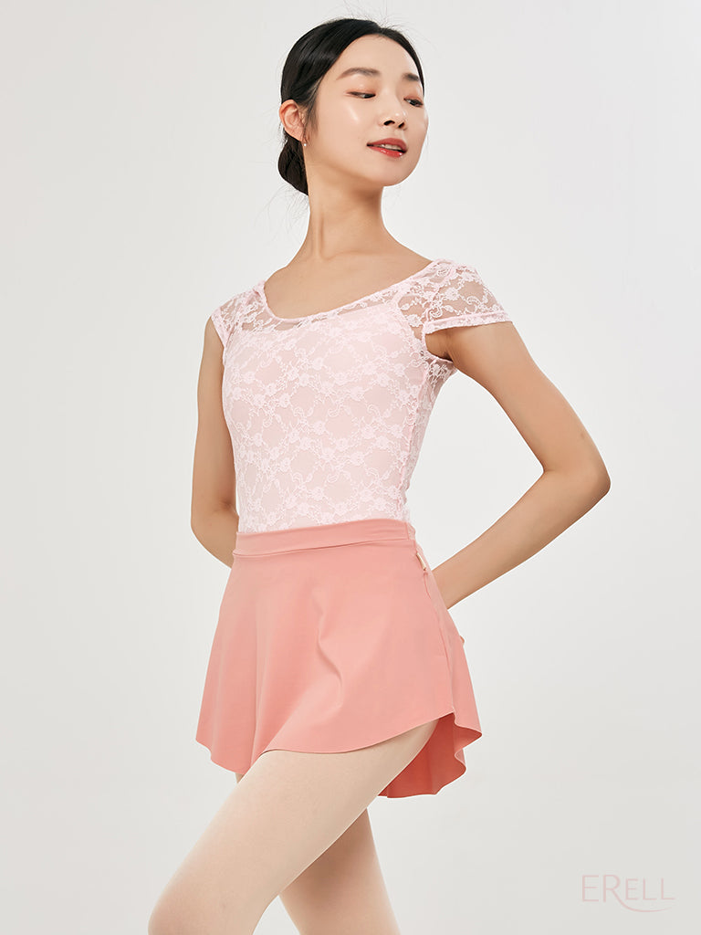 This short-sleeve top features a floral embroidered knit design and is made from lace-spandex fabric, offering a cool and airy feel while exuding an antique and lovely vibe.