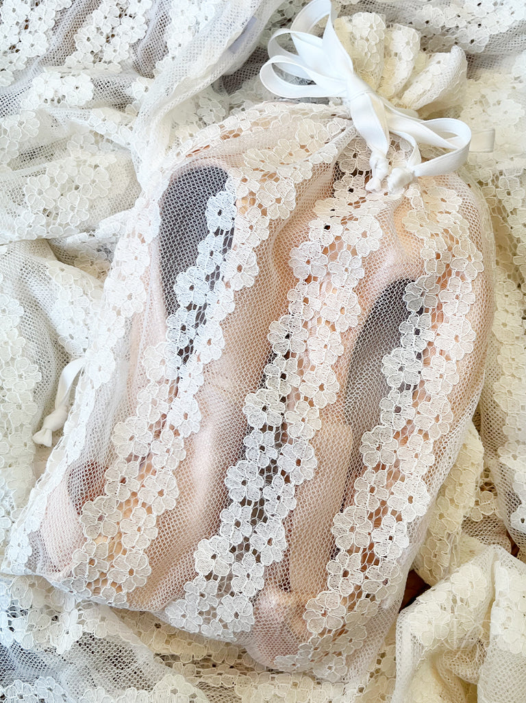 Featuring a delicate floral lace pattern, it embodies a sweet yet elegant mood.