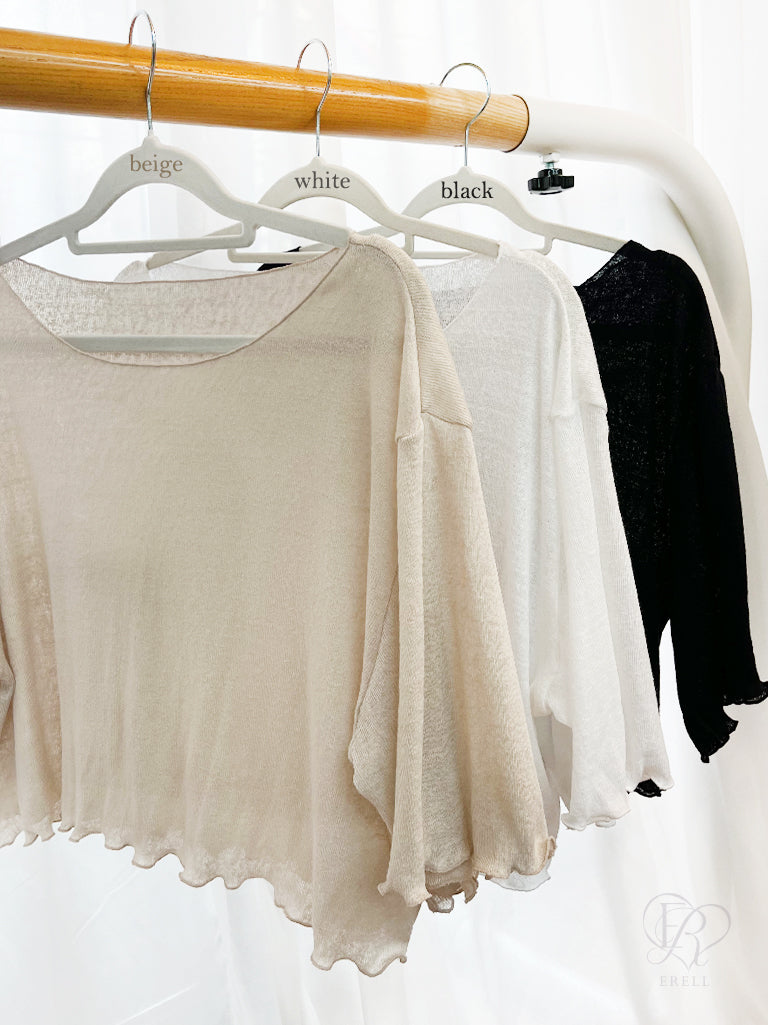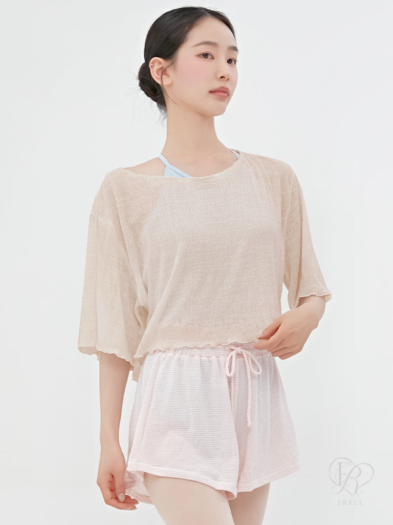 A short-sleeve tee made from a lightweight, sheer fabric with a naturally airy texture — perfect for a cool and breathable wear.