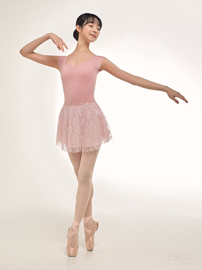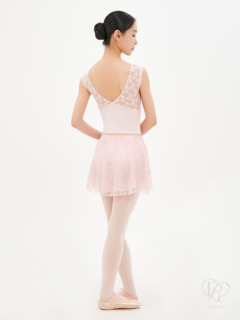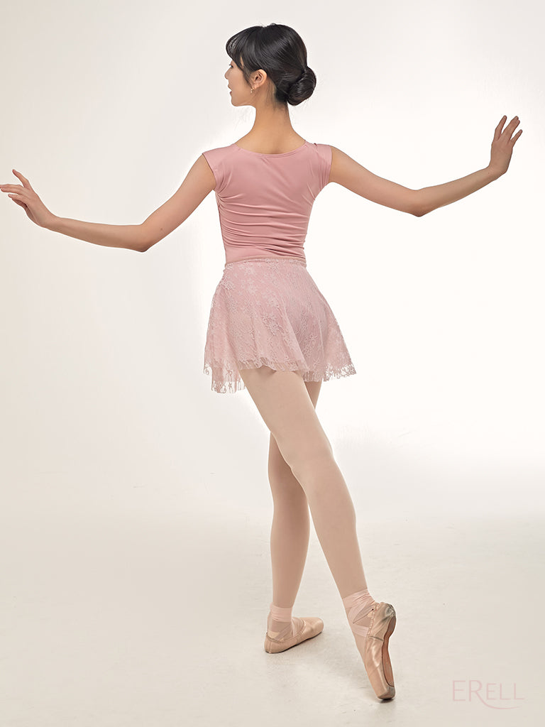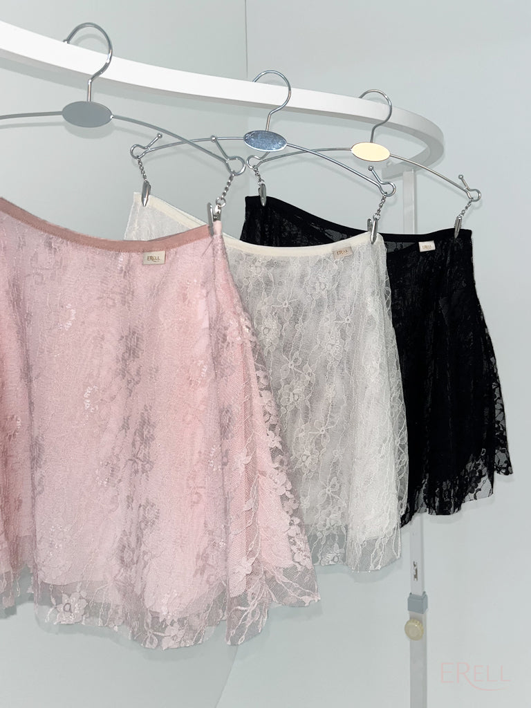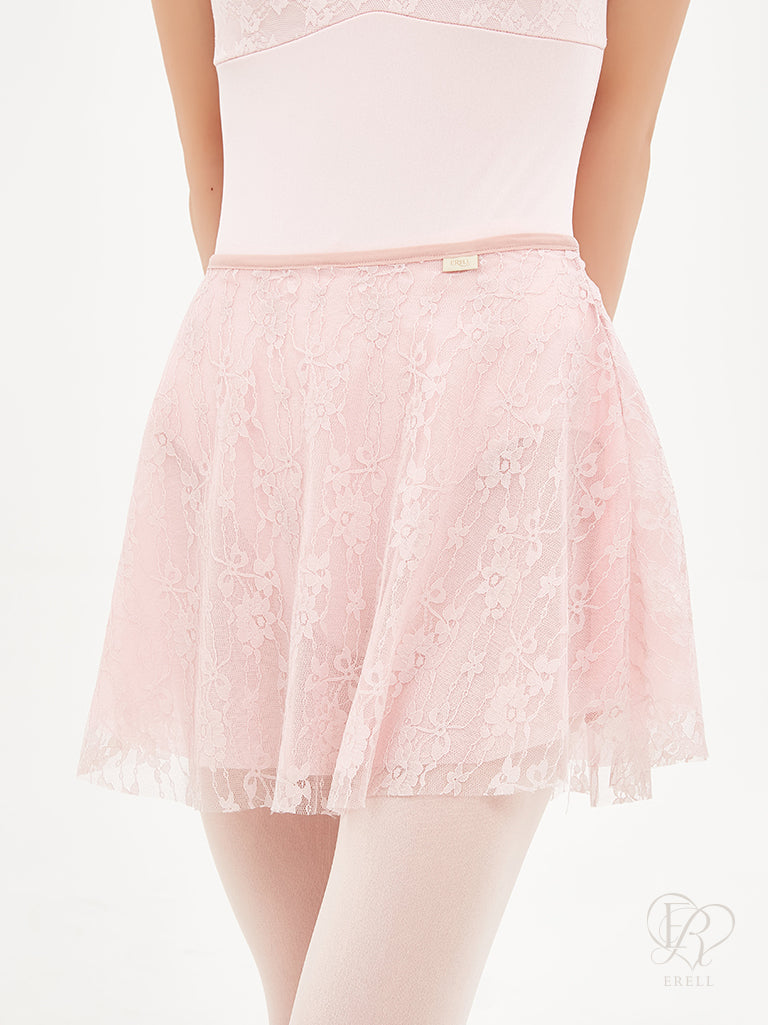 A double-layered pull-on skirt made with soft mesh spandex and non-scratchy lace.
