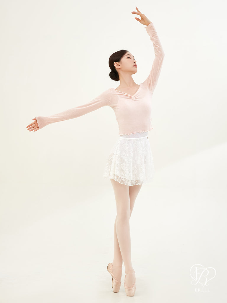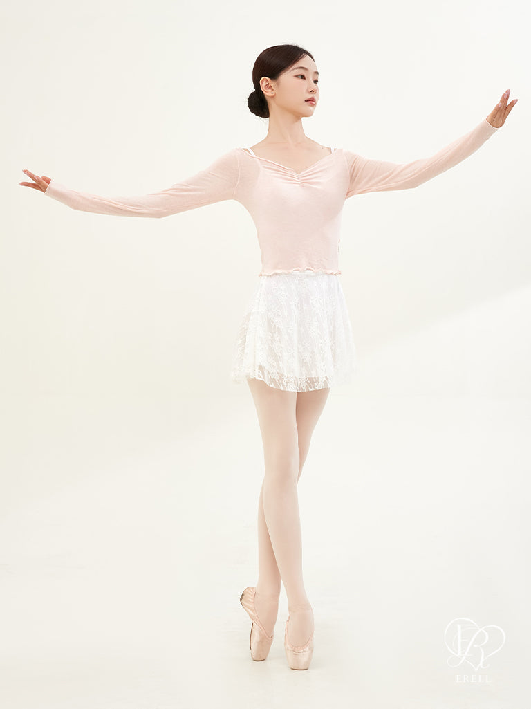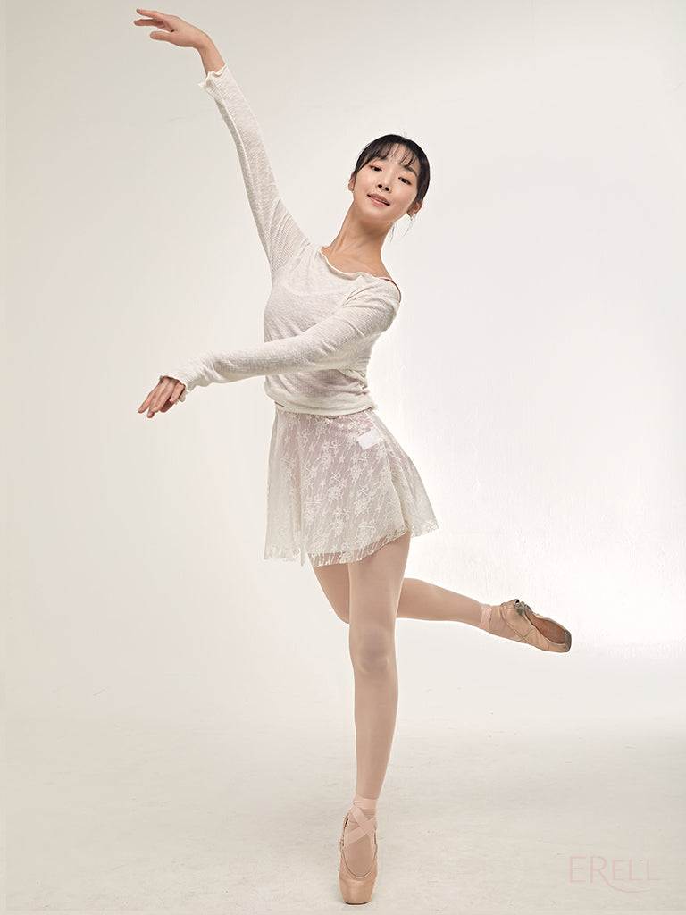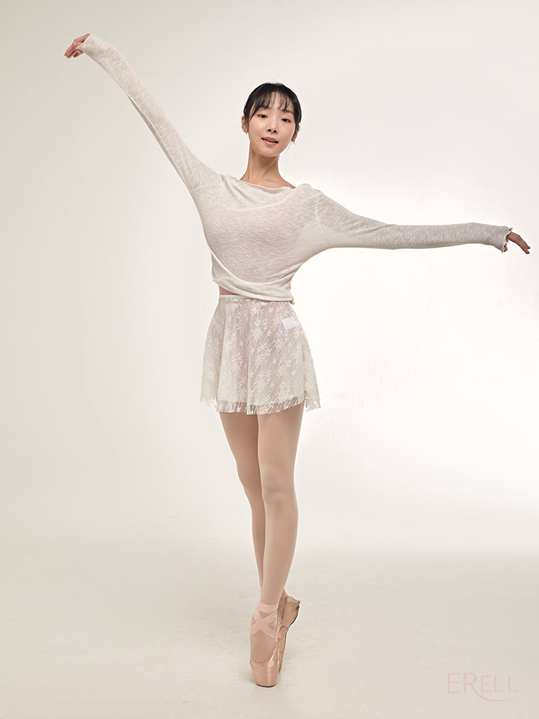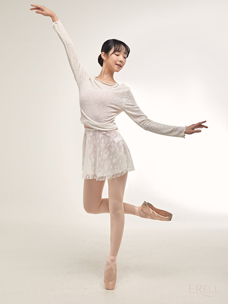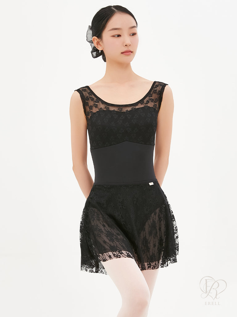 A double-layered pull-on skirt made with soft mesh spandex and non-scratchy lace.
