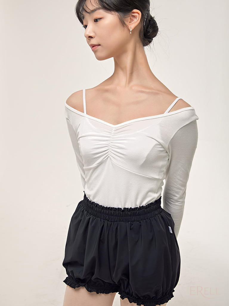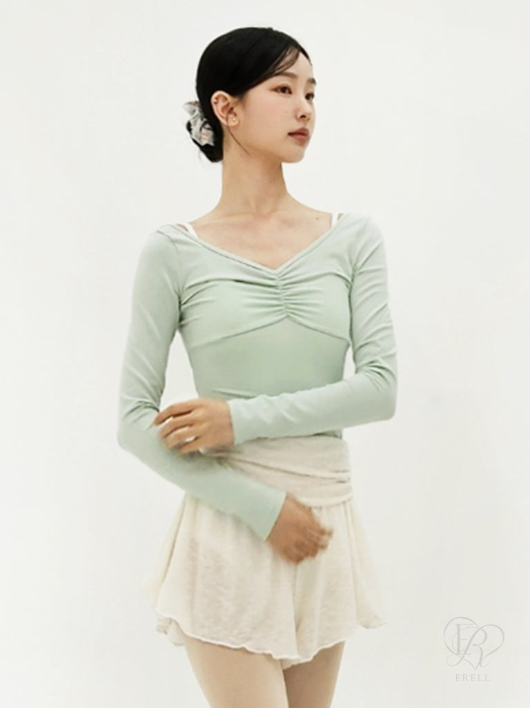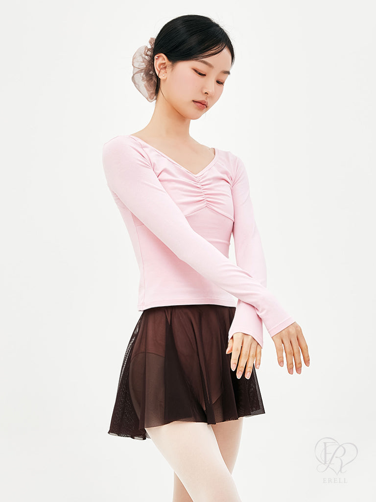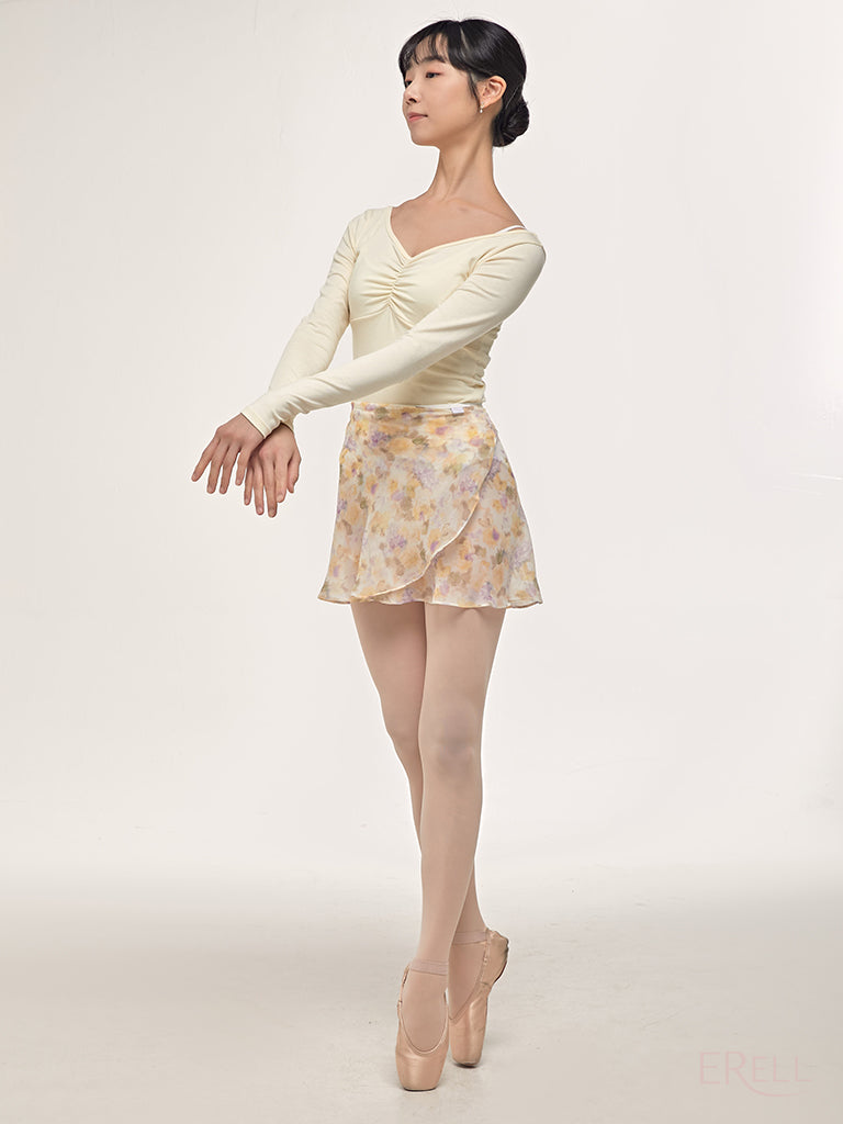 The princess shirring at the center of the bust, combined with the bust seam, accentuates the upper body, offering a flattering silhouette.