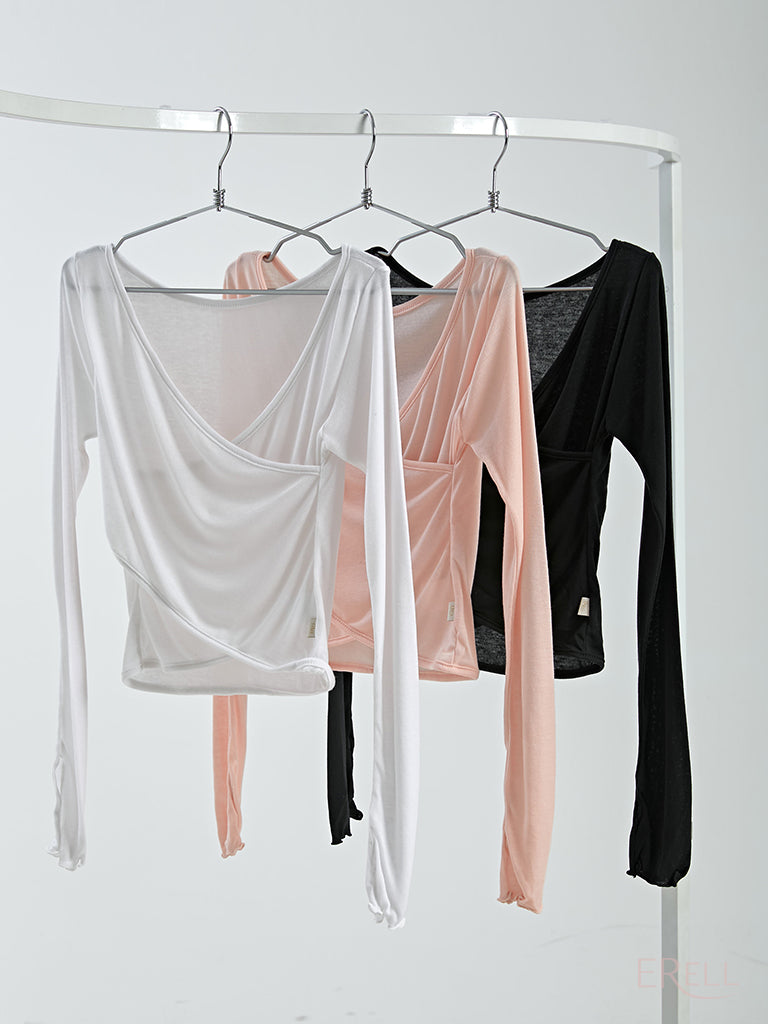 Designed with a unique dual neckline—one side features a cross-over detail while the other has a boat neck—allowing you to style it in two different ways.