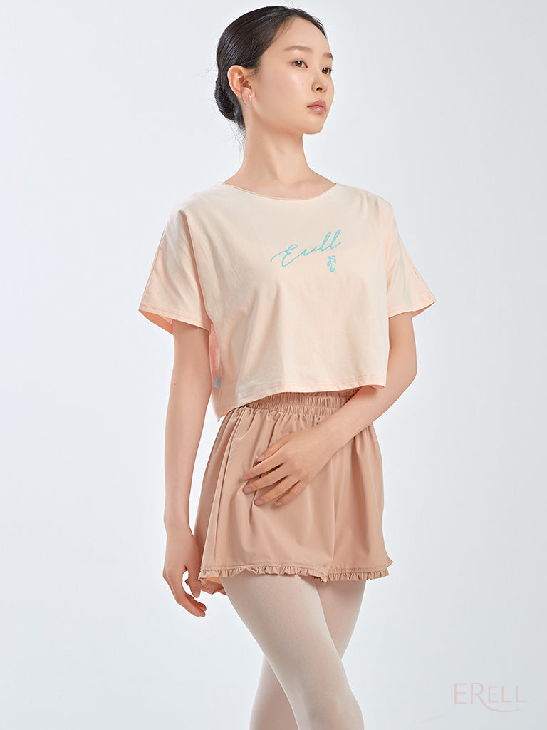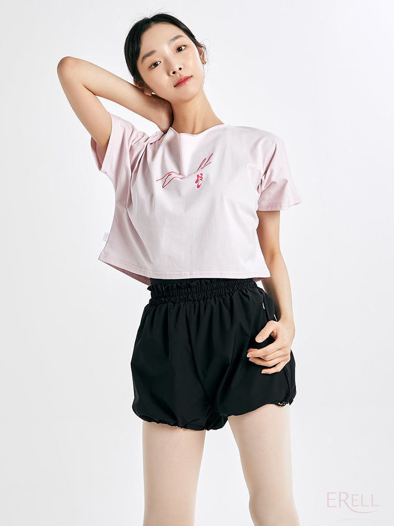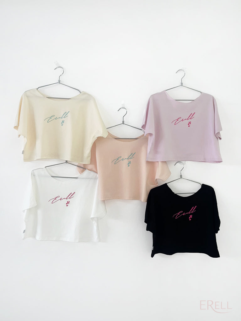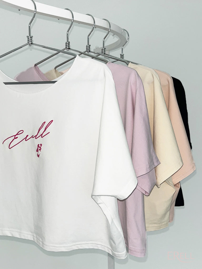The neckline is designed to avoid contact with the face when putting it on or taking it off, and the semi-cropped length sits just right—recommended for those who find traditional cropped fits too short.