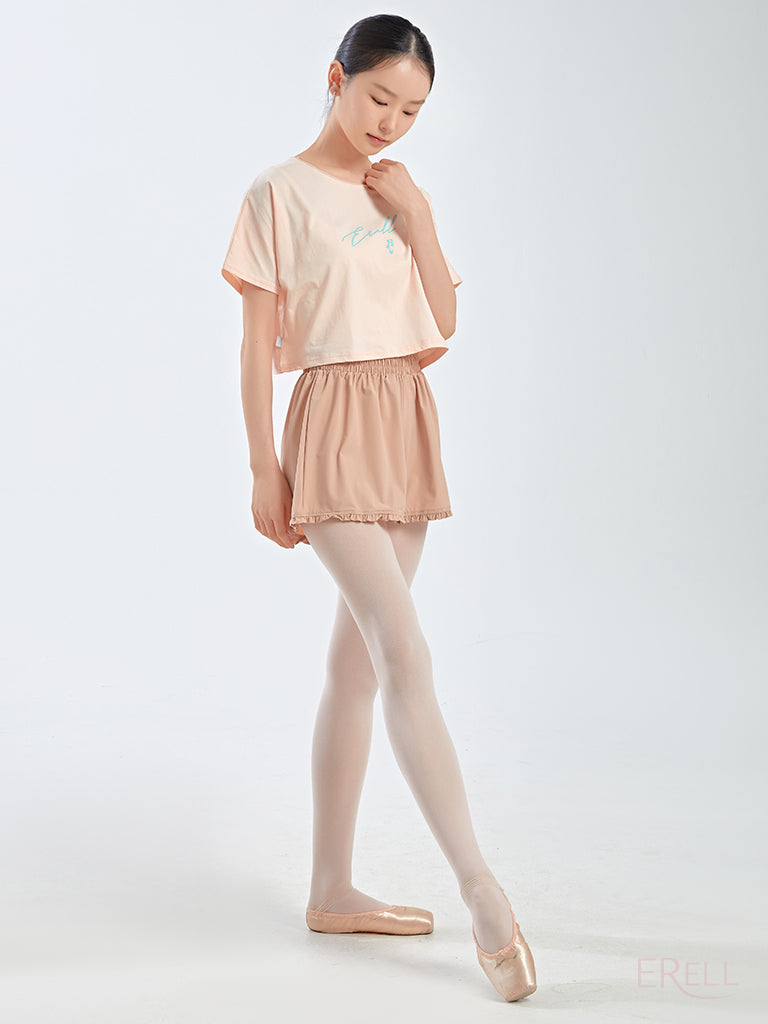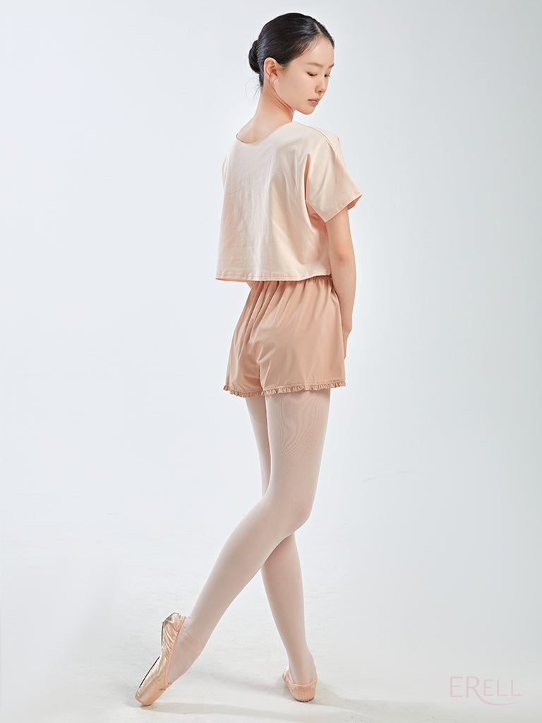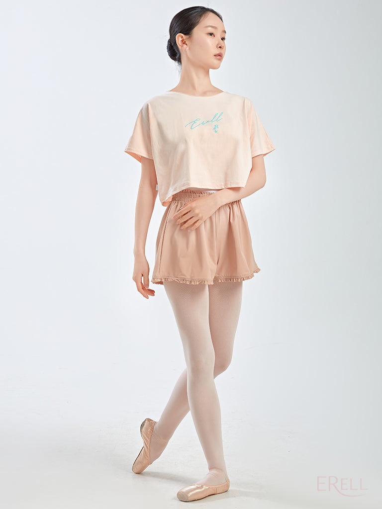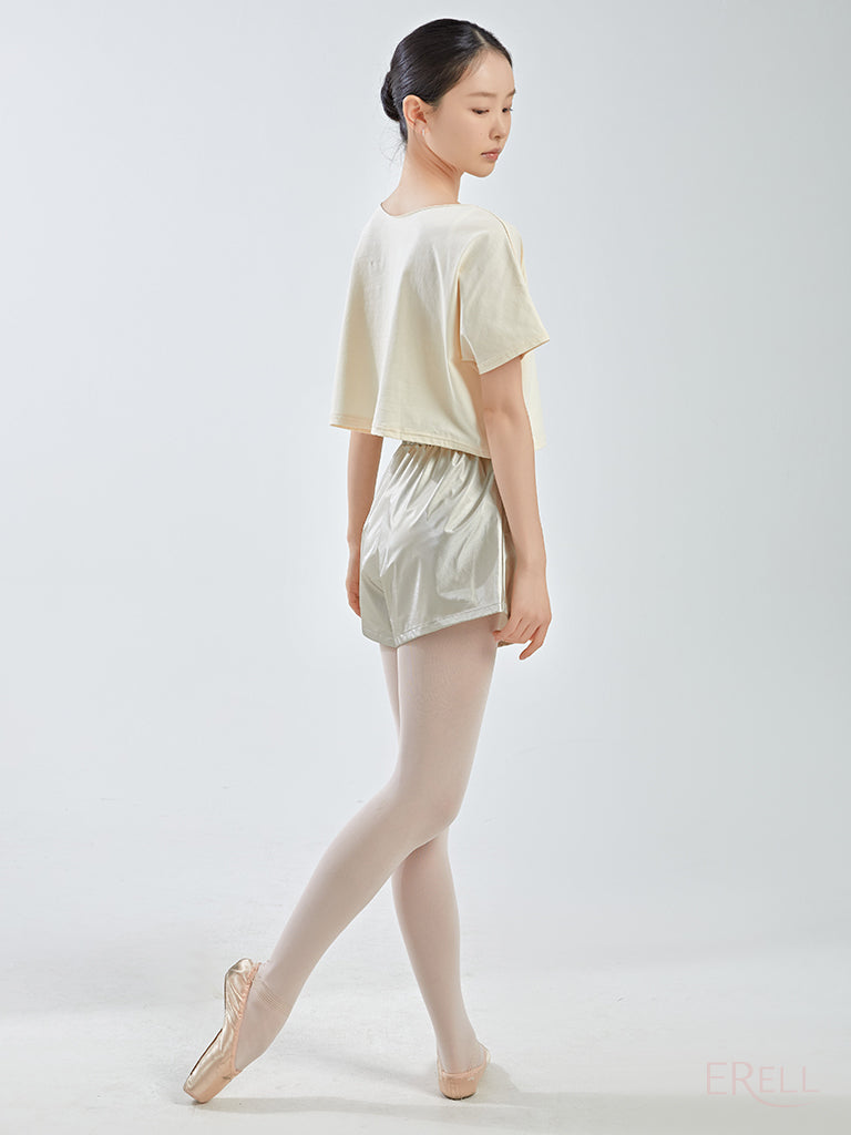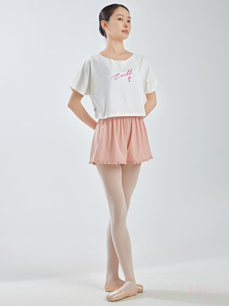 The neckline is designed to avoid contact with the face when putting it on or taking it off, and the semi-cropped length sits just right—recommended for those who find traditional cropped fits too short.