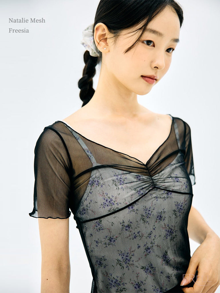 The Natalie SS version is made with mesh spandex material, offering a cool and comfortable fit.