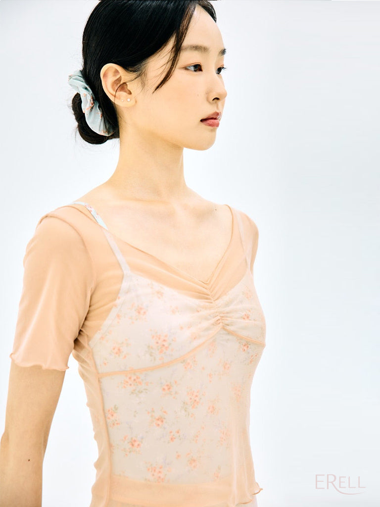The princess shirring at the center of the chest and the bust seam accentuate the upper body’s silhouette, while the basic yet feminine details come together, making it a versatile daily item that can be worn regularly.