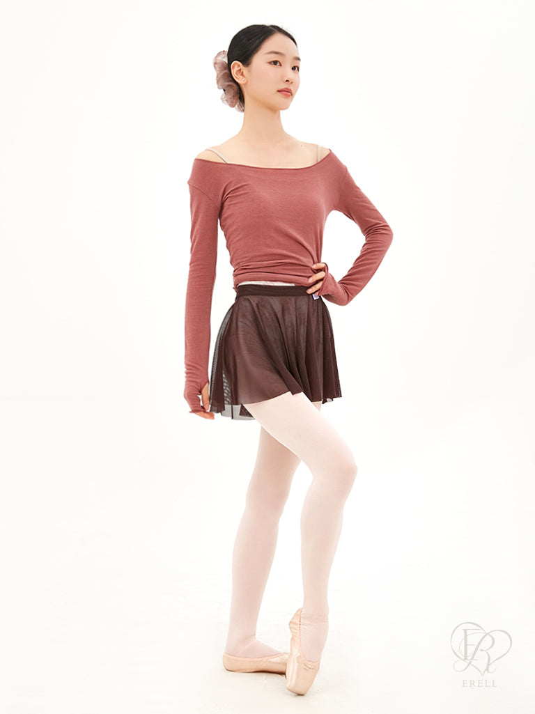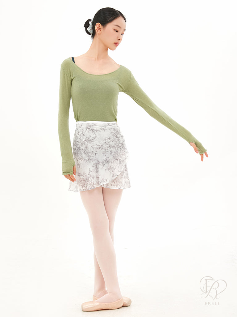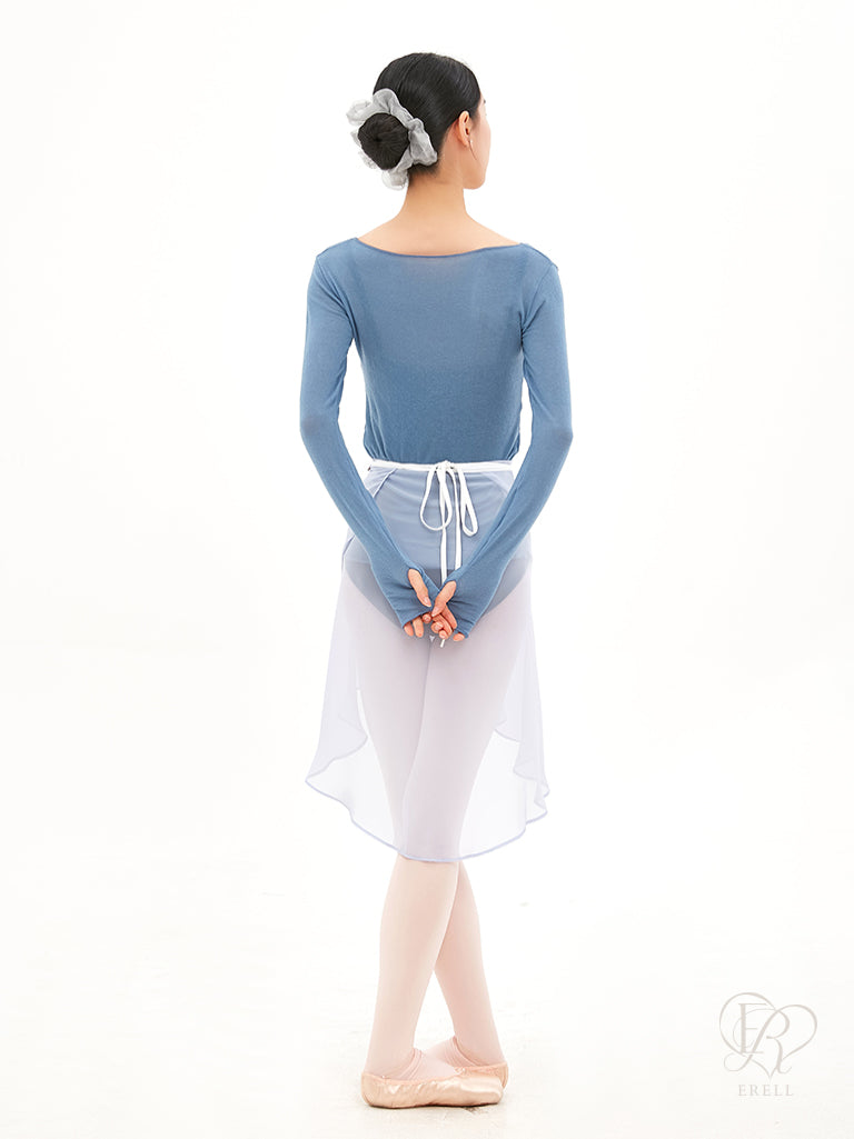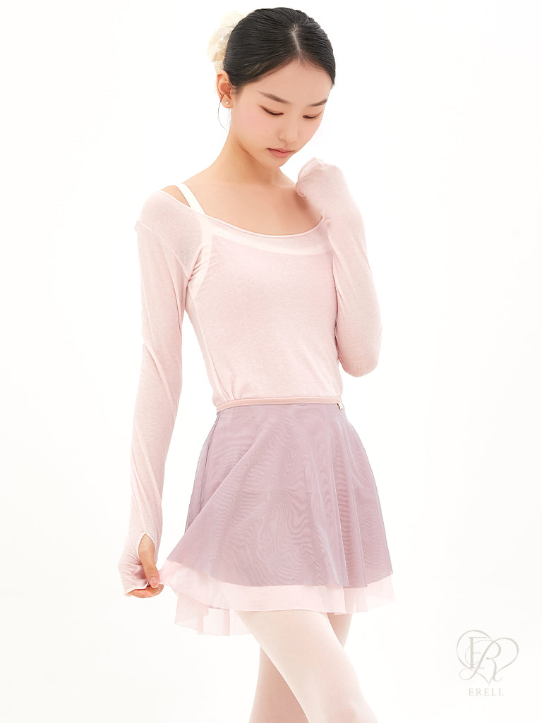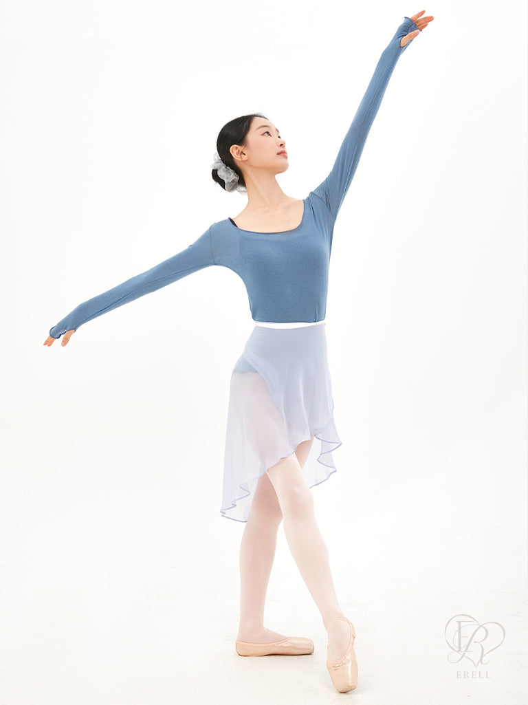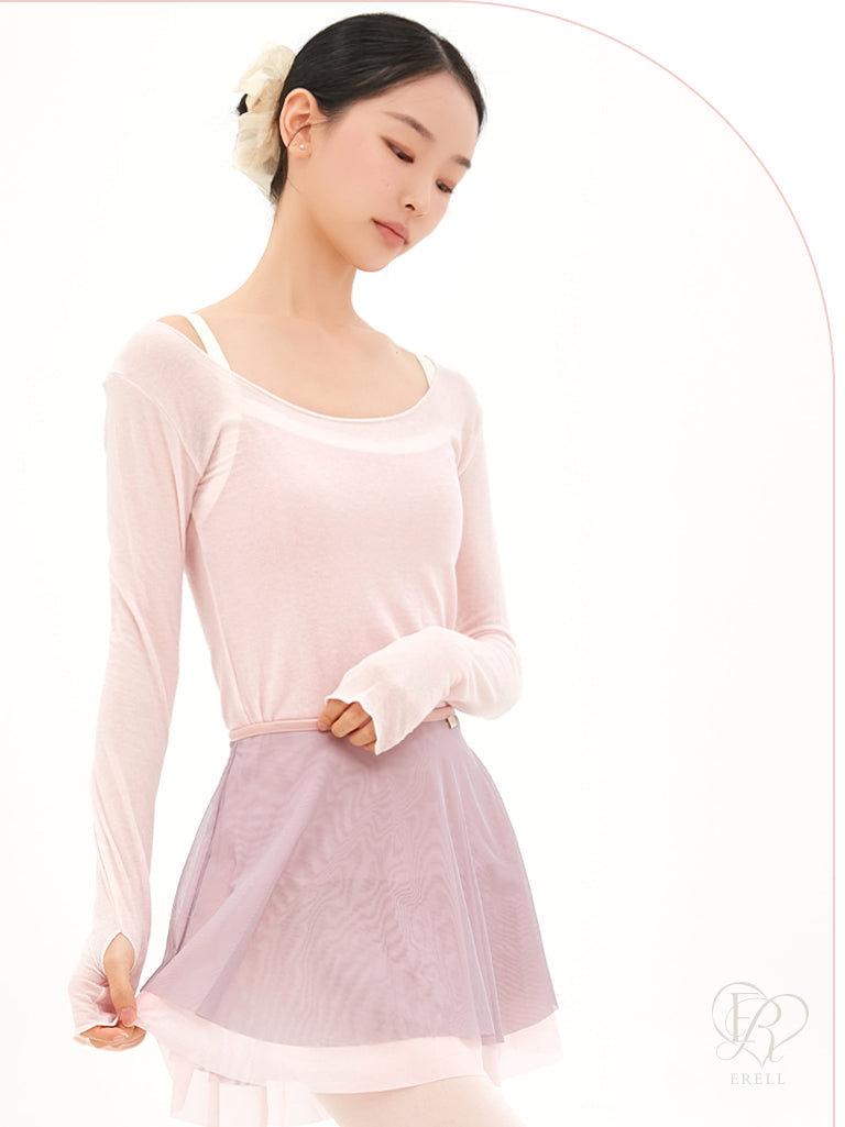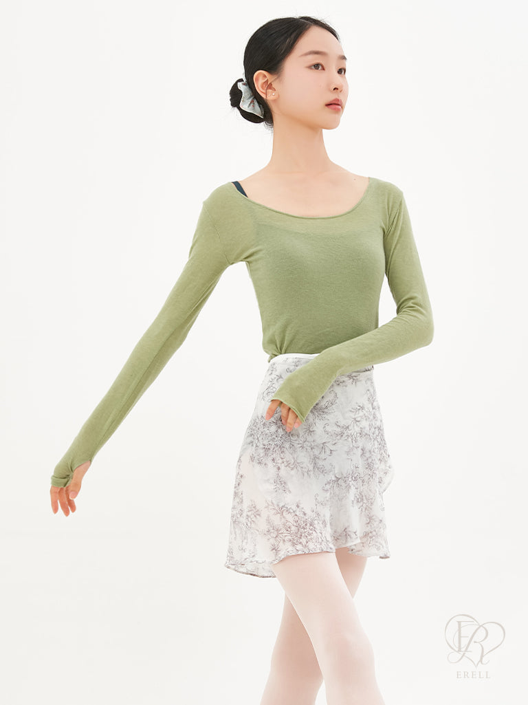 The long sleeve length with finger hole details prevents sleeves from riding up and enhances the beauty of your arm lines.