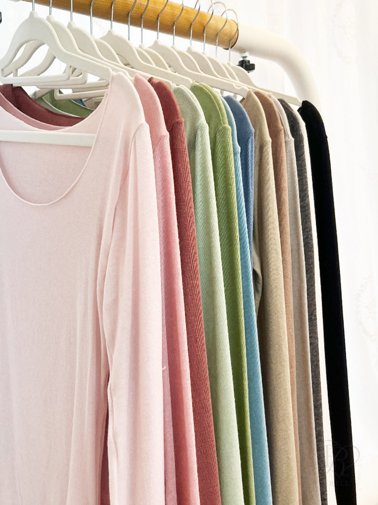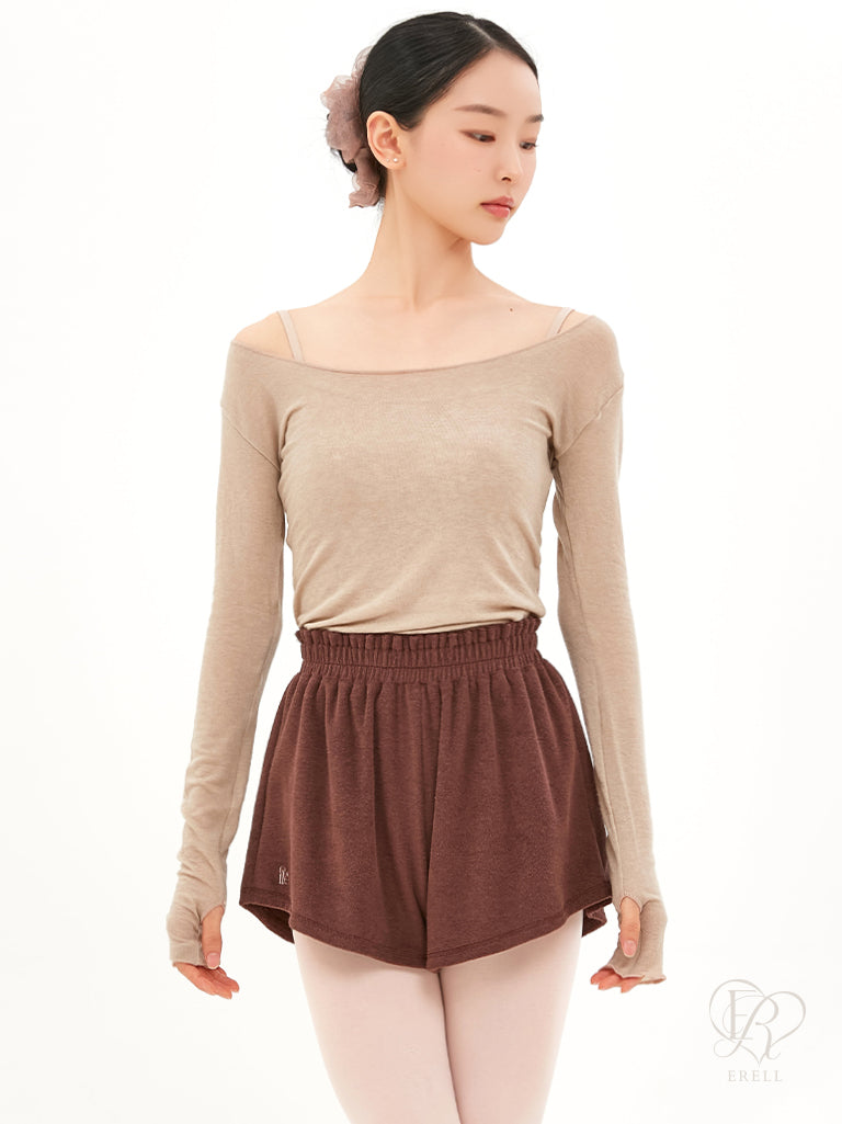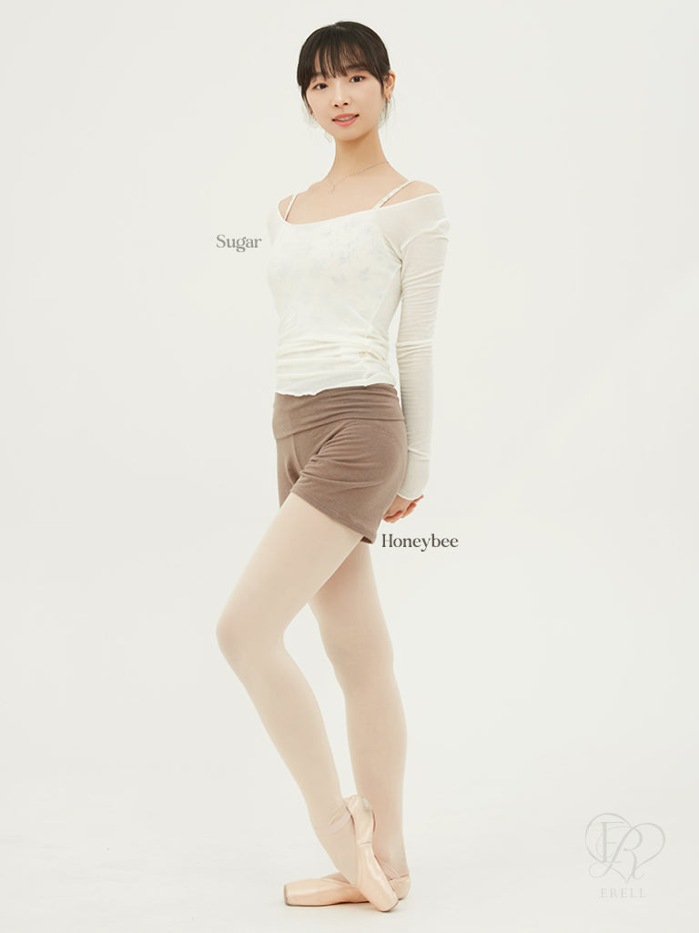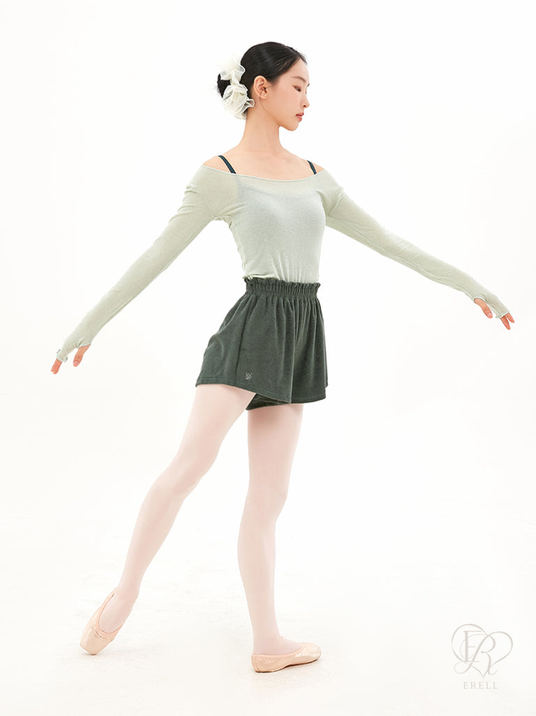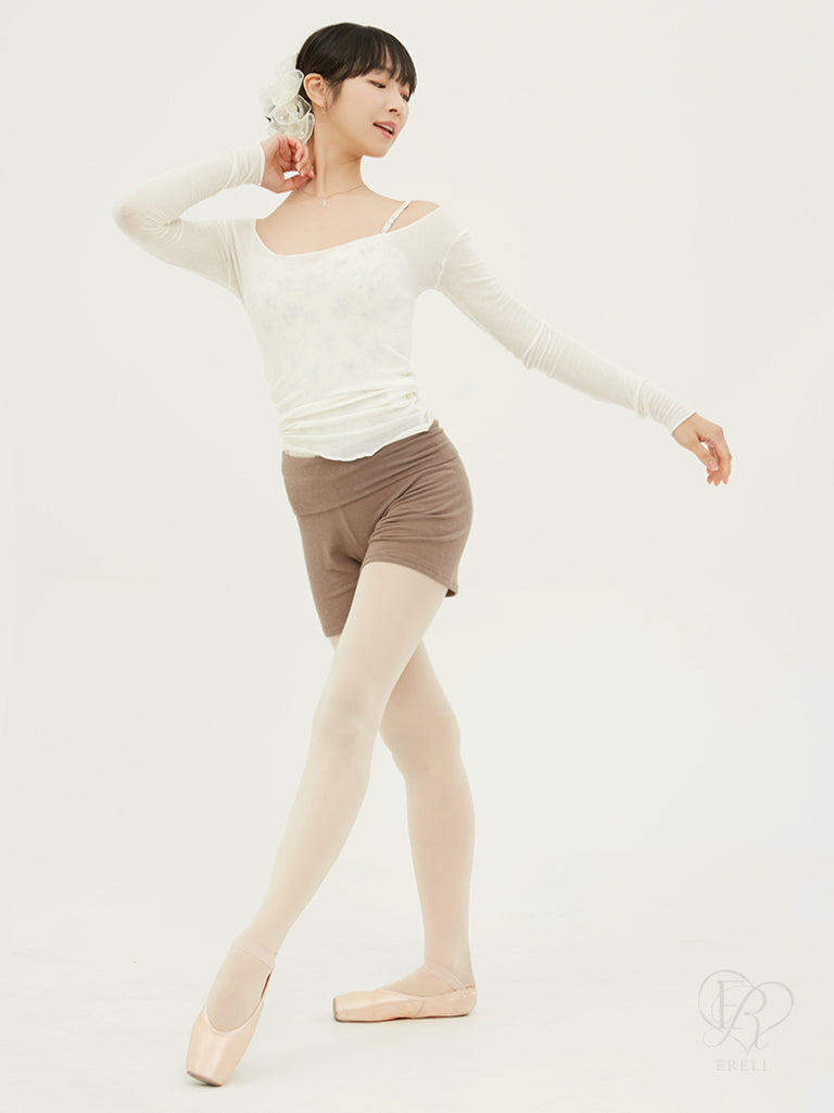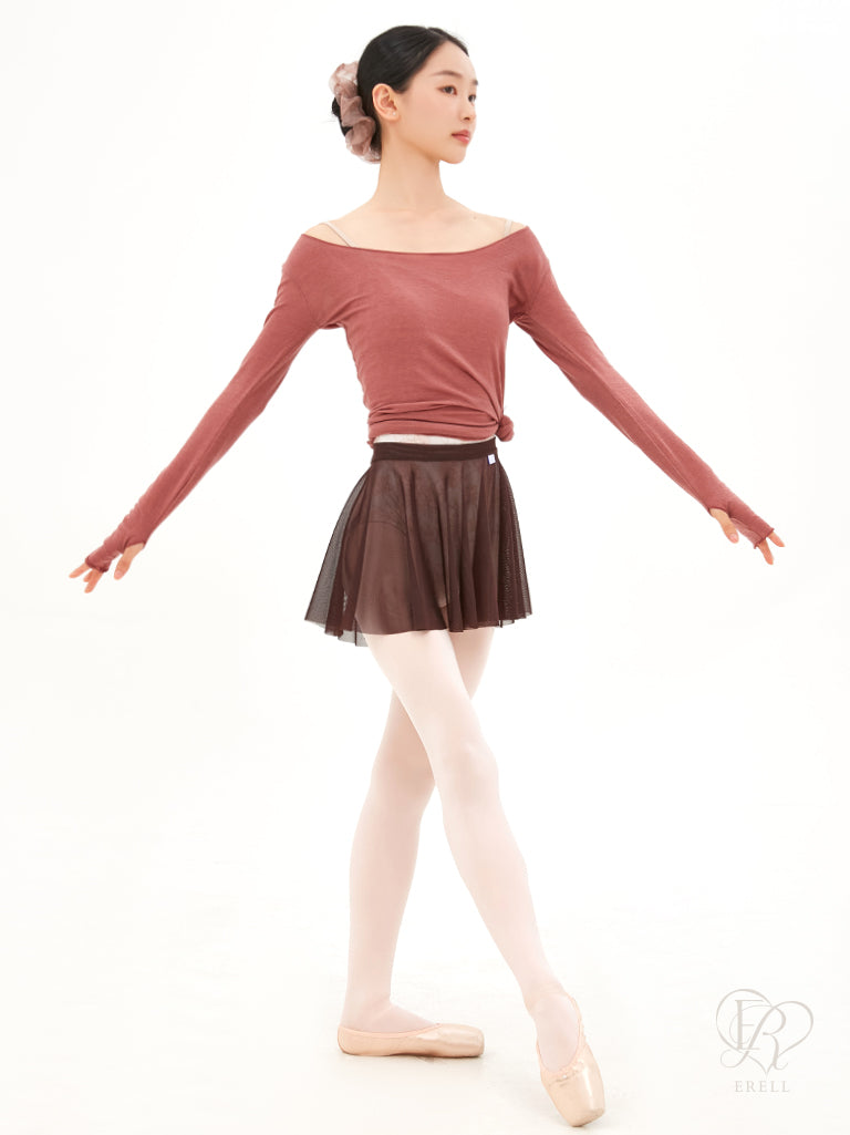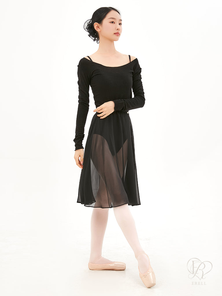 The long sleeve length with finger hole details prevents sleeves from riding up and enhances the beauty of your arm lines.