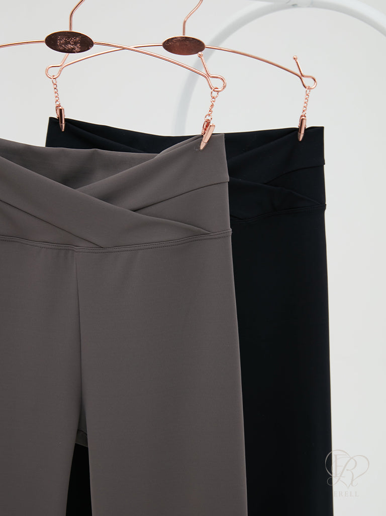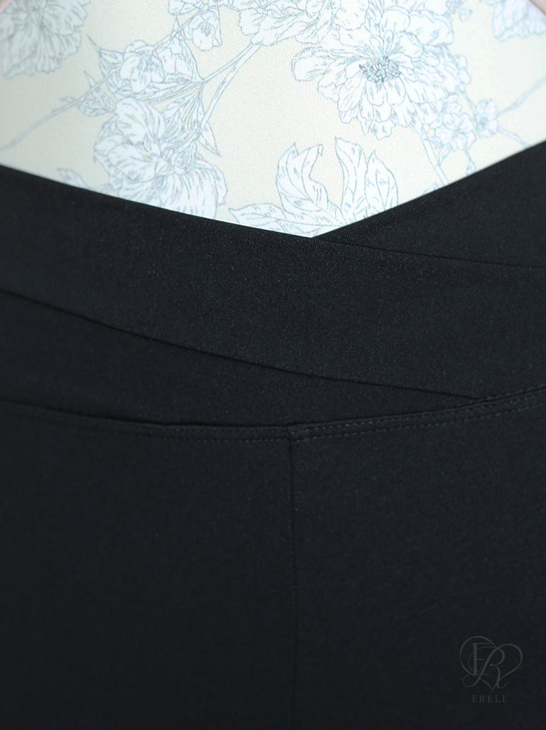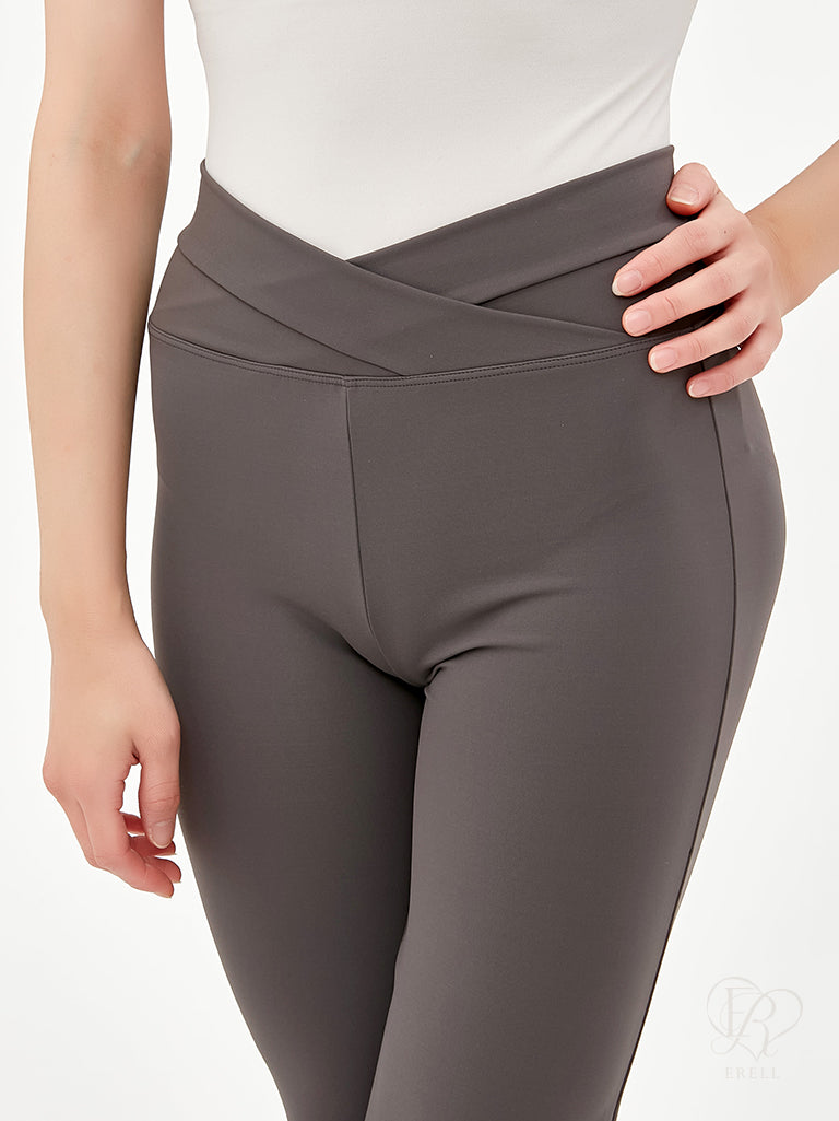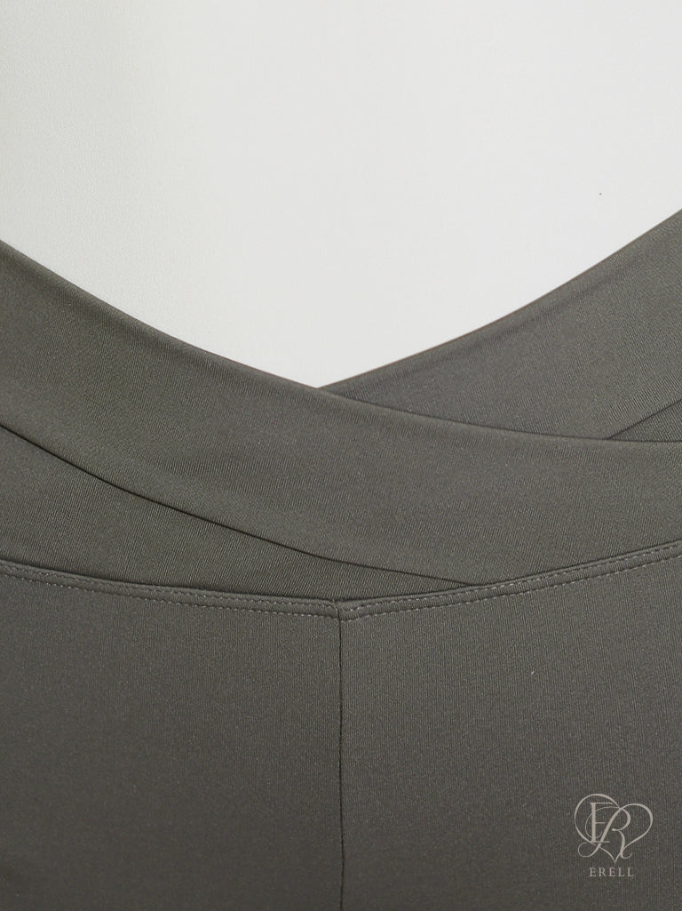 The V-cut crossover waistband gently hugs the waist without covering the abdominal area, allowing you to see muscle movement during practice.